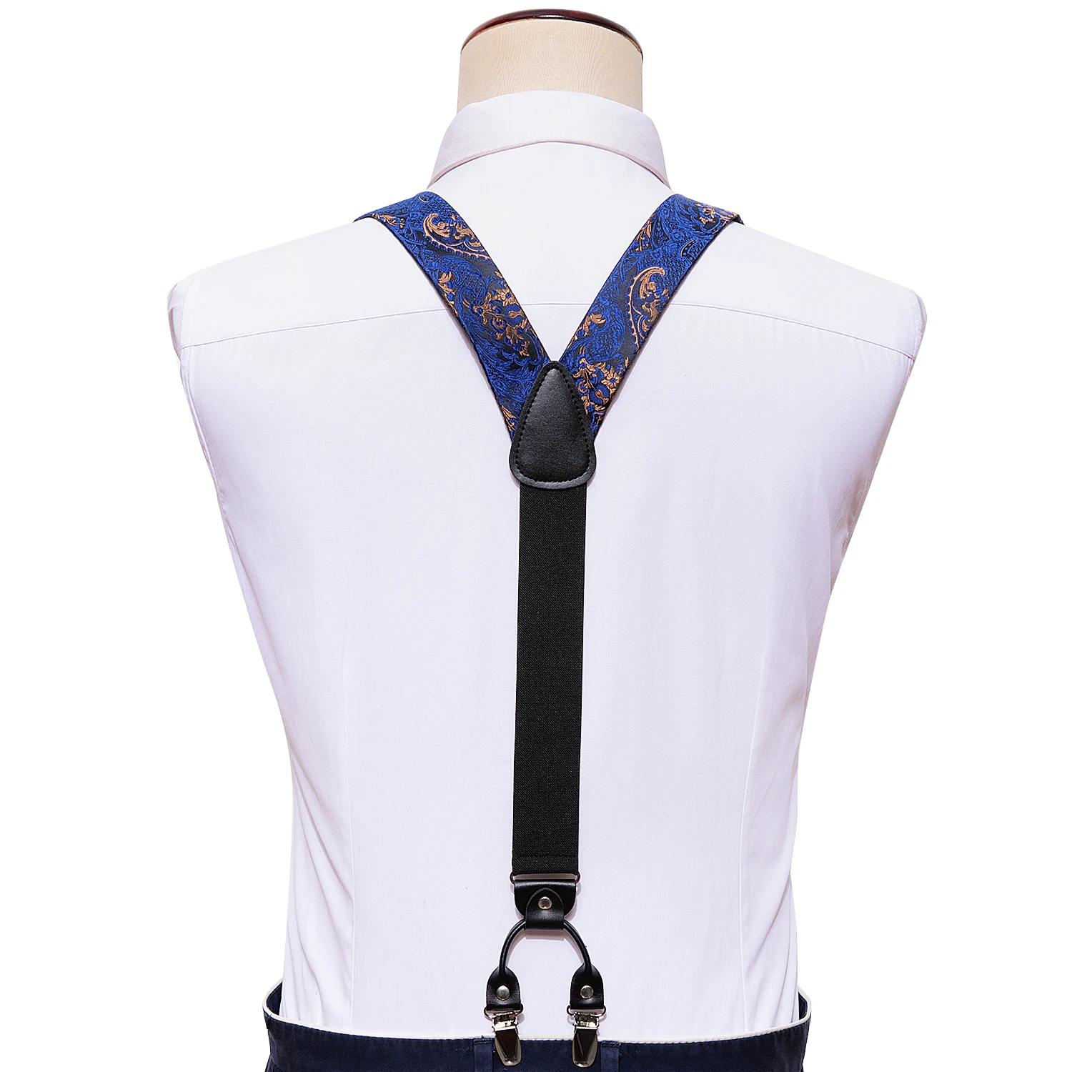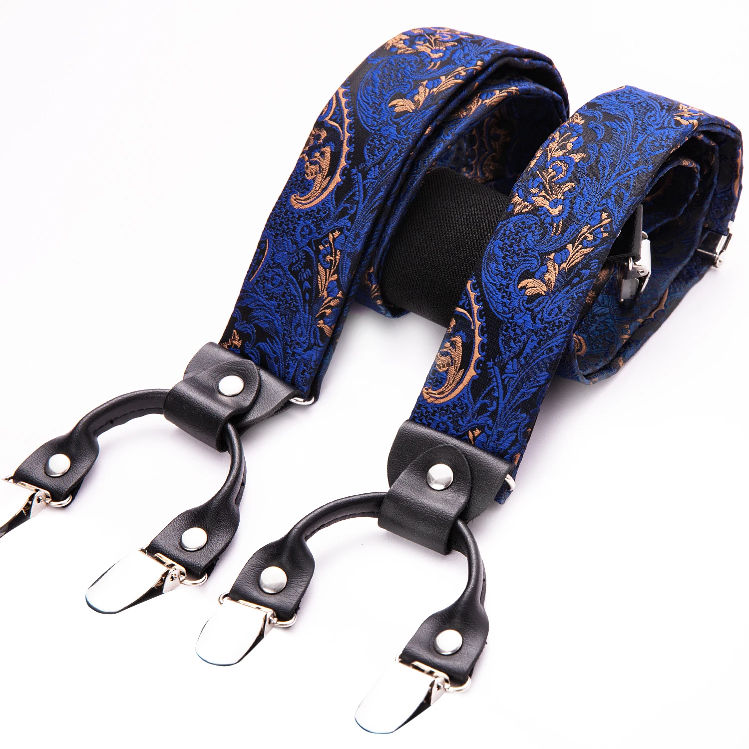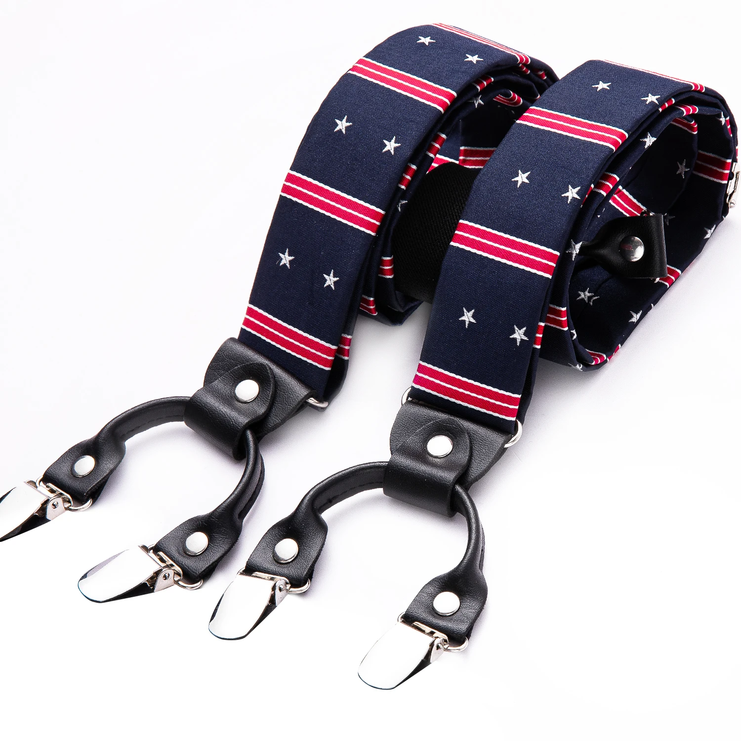 Набор шелковых подтяжек для мужчин, Эластичные Y-образные регулируемые запонки, галстук, запонки, комплект с 6 зажимами, Barry.Wang