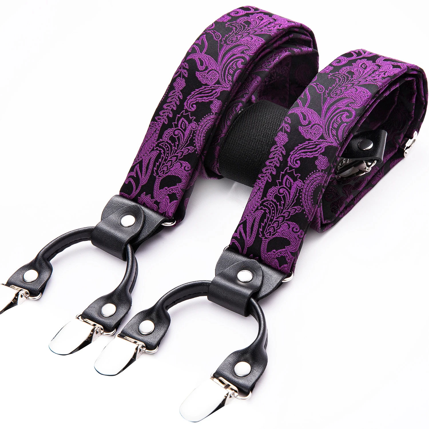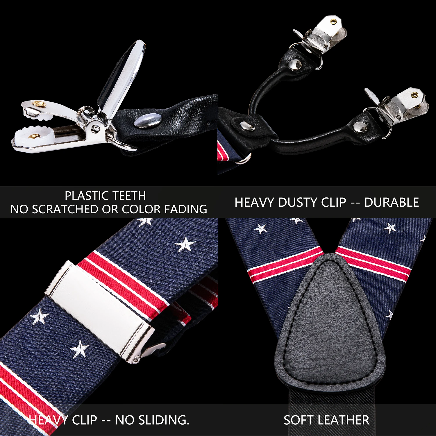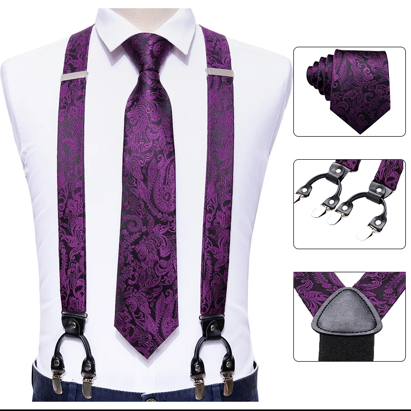 Набор шелковых подтяжек для мужчин, Эластичные Y-образные регулируемые запонки, галстук, запонки, комплект с 6 зажимами, Barry.Wang