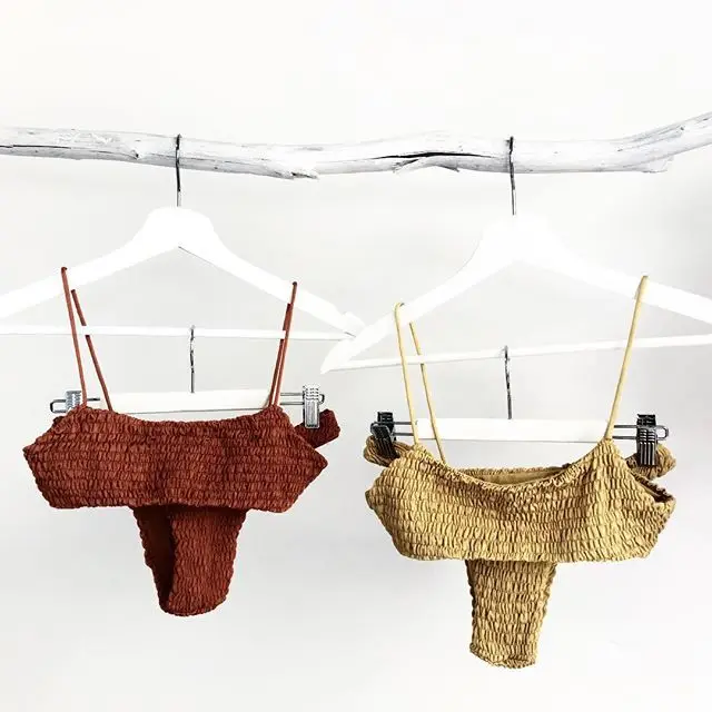 Желтый плиссированный вязаный купальник бикини с рюшами, сексуальны...