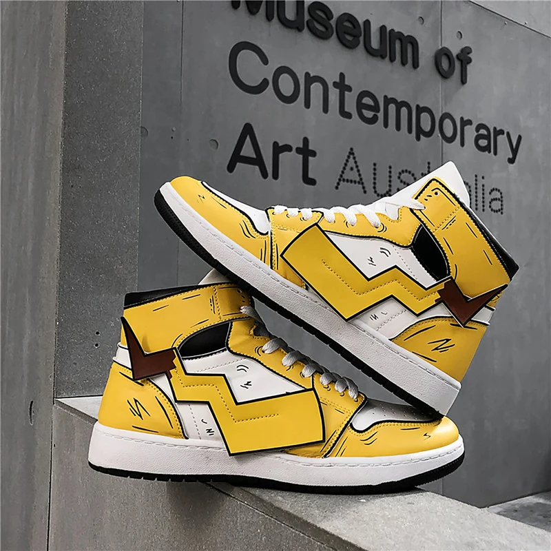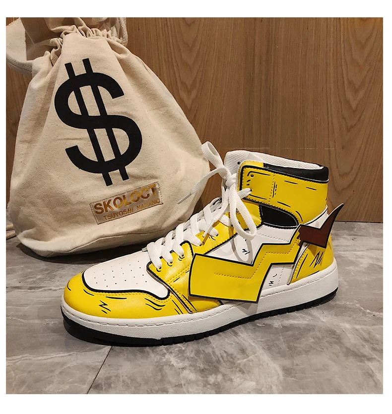 Мужские классические кроссовки из ПУ кожи, высокие, Вулканизированная подошва, повседневная обувь, аниме стиль, Осень-зима