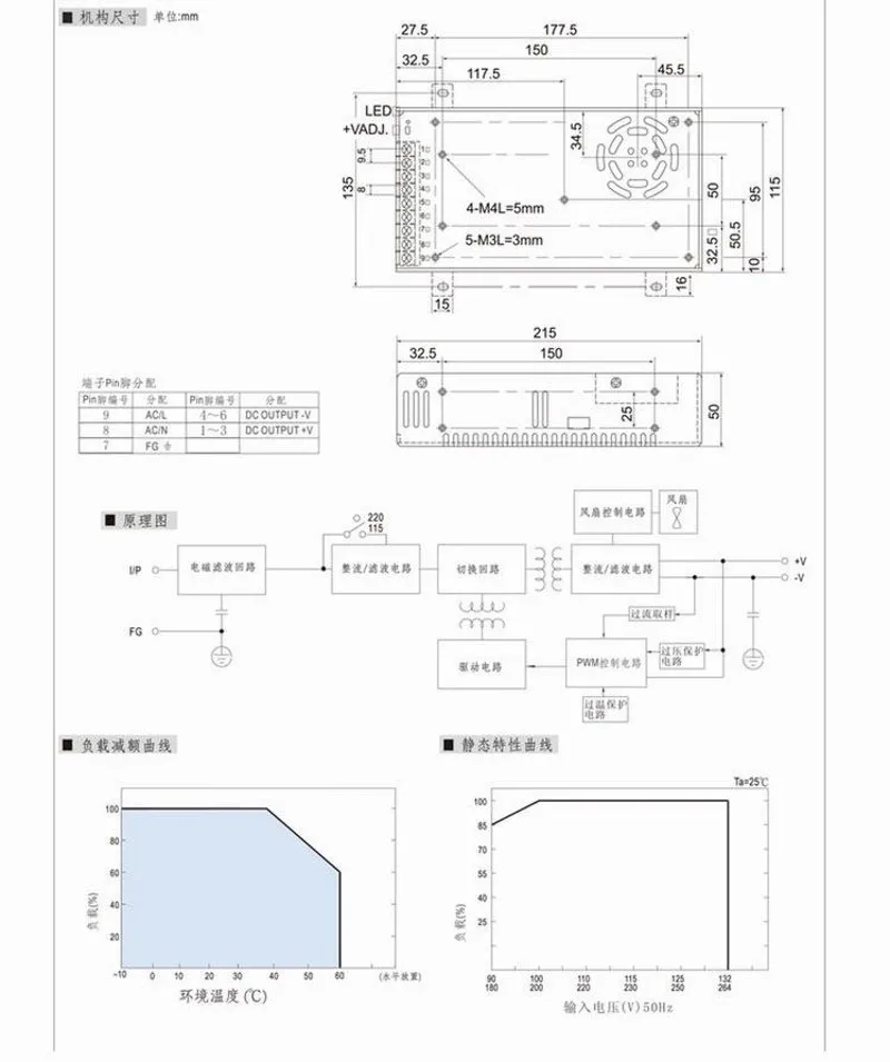Продукт: Отображение напряжения и тока 0-300 В 1.6A источник питания 0-480 Вт 0-5 В напряжение управления сигналом Входное напряжение: AC110/220 В Выходное напряжение: DC0-300V 1.6A Номинальная мощность: 480 Вт Размер изделия: 21,5 см (длина) * 11,5 см (ширина) * 5 см (Дальний свет) Функция защиты от короткого замыкания/перегрузки/перенапряжения 100% испытание на полную нагрузку Входное напряжение и частотный диапазон --------- 110/220 В переменного тока/47 ~ 63 Гц Начальный ток удара -------------- 20A @ 120VAC (холодный запуск) Выходной диапазон-+ 100% (Номинальное выходное напряжение) Защита от перегрузки ----------------- 105% ~ 200% (номинальная нагрузка), самовосстановление Защита от перенапряжения ------------------ 115% ~ 135% (Номинальное выходное напряжение) Защита от короткого замыкания ----------------- самовосстановление Время начала вывода-2S @ 120VAC 1,0 S @ 230VAC Время удержания на выходе-более 10 мс при 120 В переменного тока, более 20 мс при 230 В переменного тока Прочность изоляции ------------------- вход-выход: AC1500V, 1 мин Вход-Чехол: AC1500V, 1 мин Выход-Чехол: DC500V, 1 мин Рабочая среда C - 10 до 50 градусов C; 20% ~ 90% относительной влажности (без конденсации) Стандарт EMC-эталонный дизайн EN55022 класса B; EN61000-4-2/-3/-4/-5/-6/-11