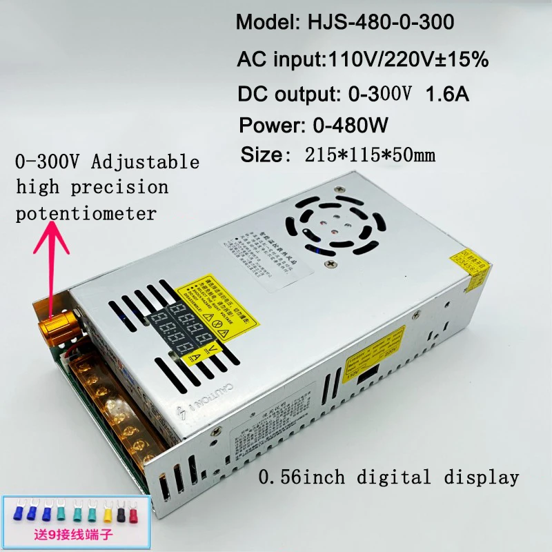 0-300V 1.6A 480 Вт Двойной цифровой Дисплей Регулируемый блок питания с переключением постоянного Питание HJS-480-0-300 DC трансформатор, регулятор напряжения 300V