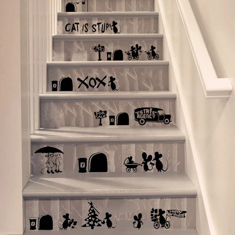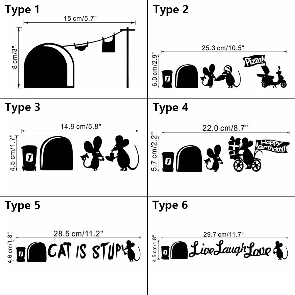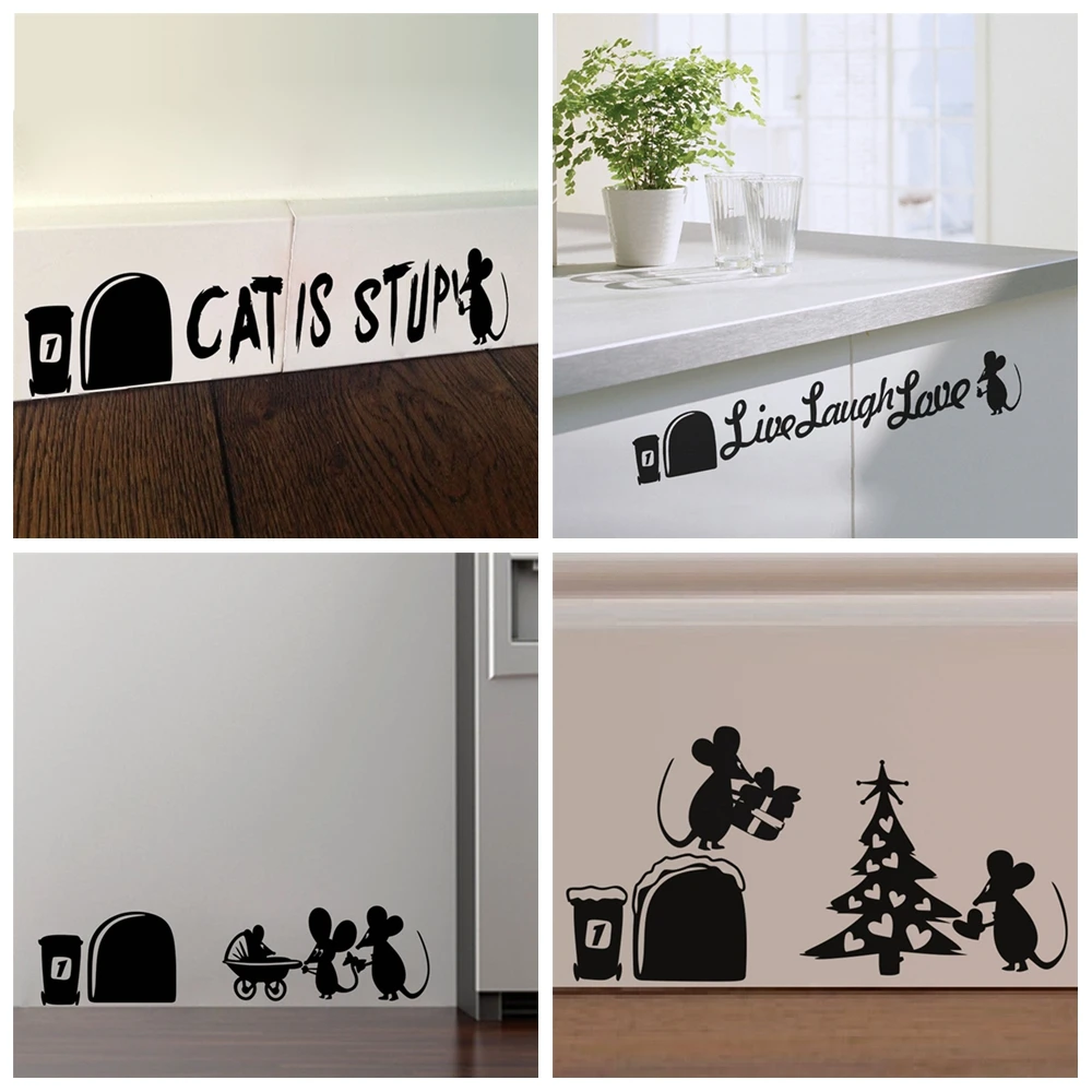 1X футболка с забавным мультипликационным принтом мышь Наклейка на стену Mousehole DIY плинтус Наклейка номер угловой орнамент Лестницы Настенная Наклейка для детской комнаты украшают украшение дома