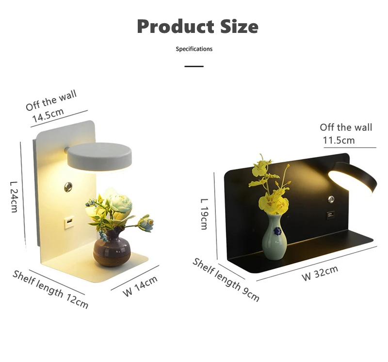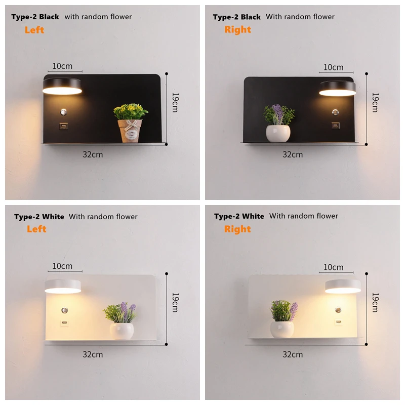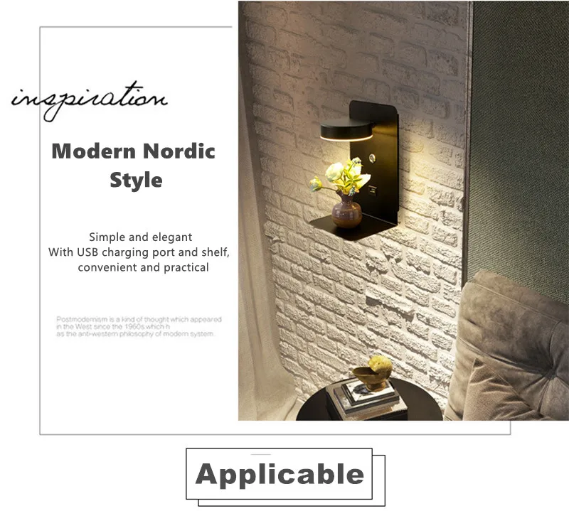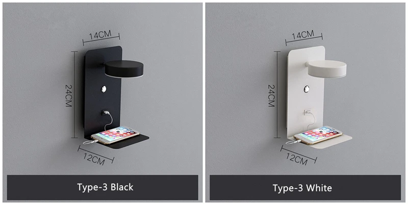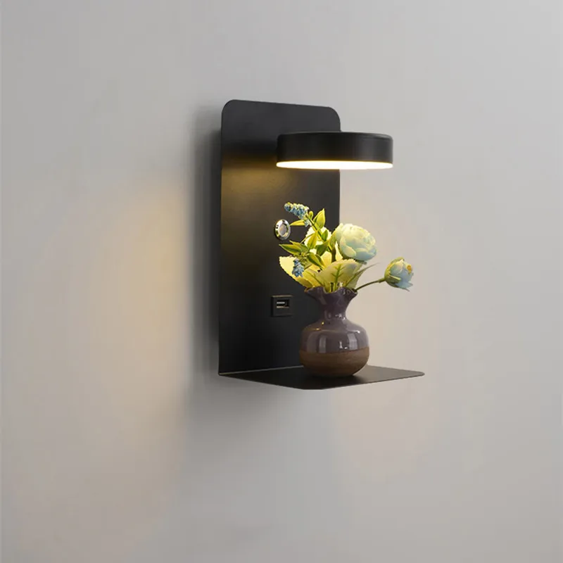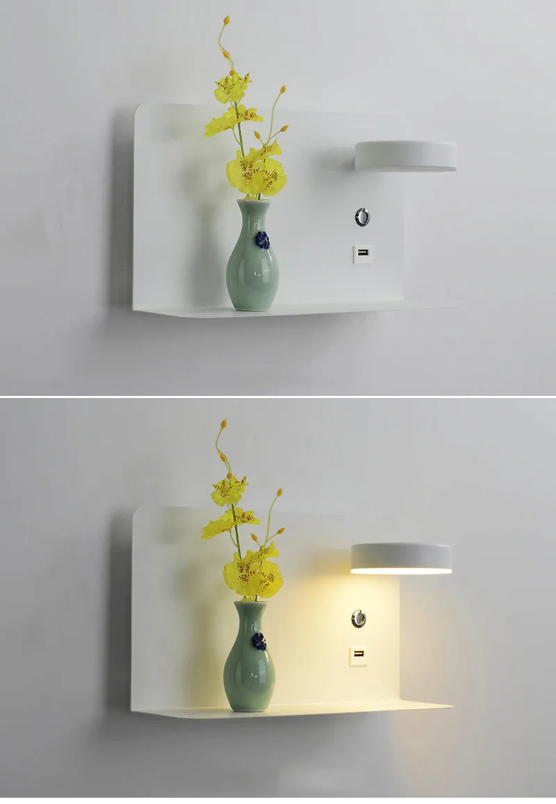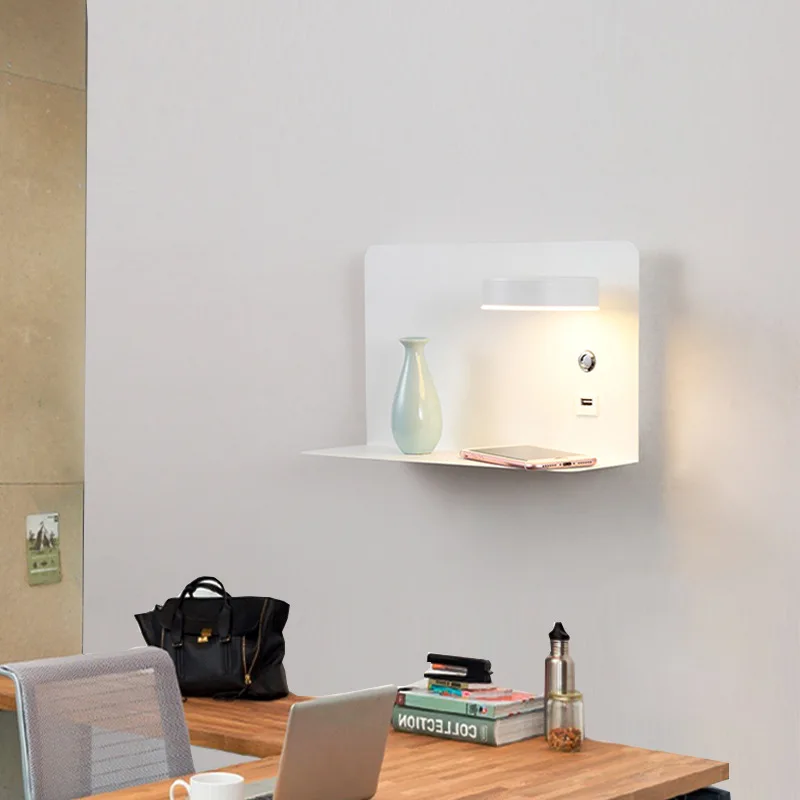 Кронштейн для хранения, прикроватный светодиодный настенный светильник с выключателем, 5 В, 2,1 А, зарядная стойка с USB-интерфейсом, настенный светильник для спальни, прикроватный коридор