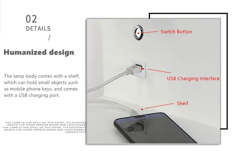 Bedside LampWith Switch USB Charging Interface
