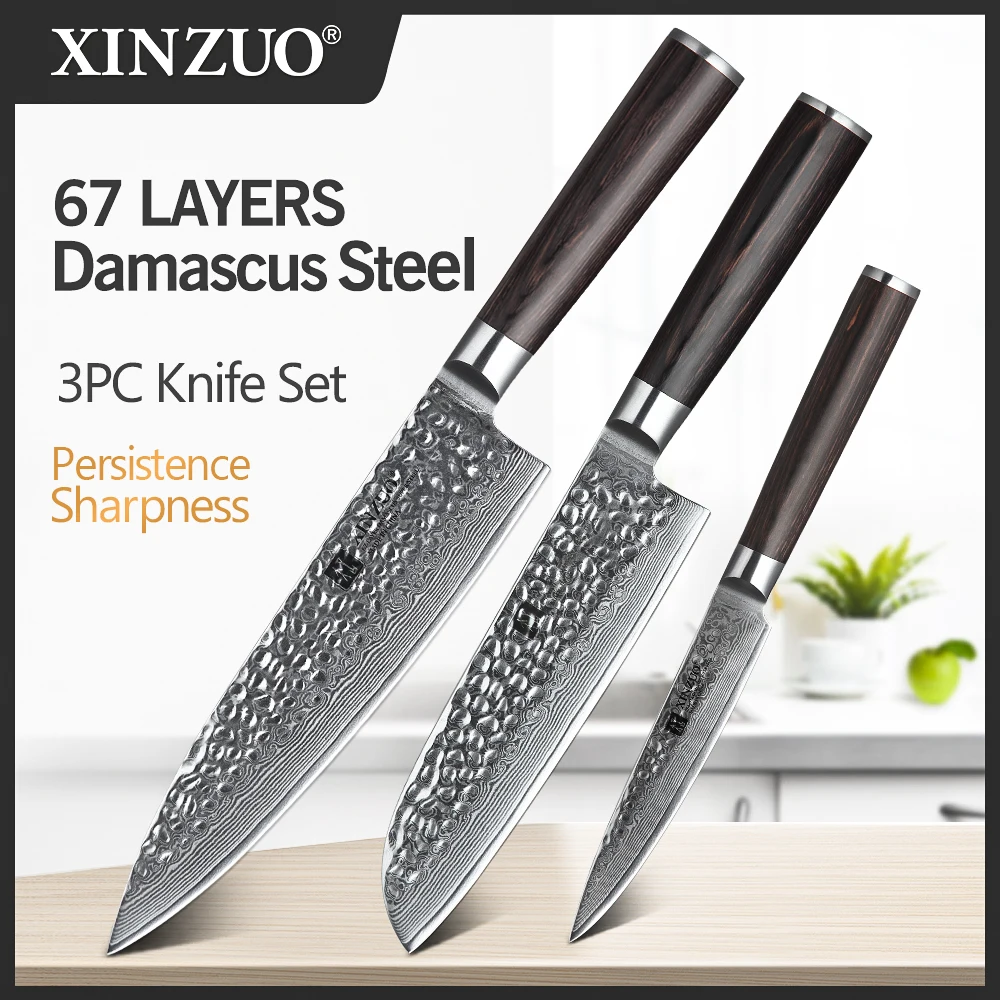 Набор кухонных ножей XINZUO из дамасской стали, комплект из 3 предметов, шеф-повар Gyuto, из нержавеющей стали, для мяса, барбекю