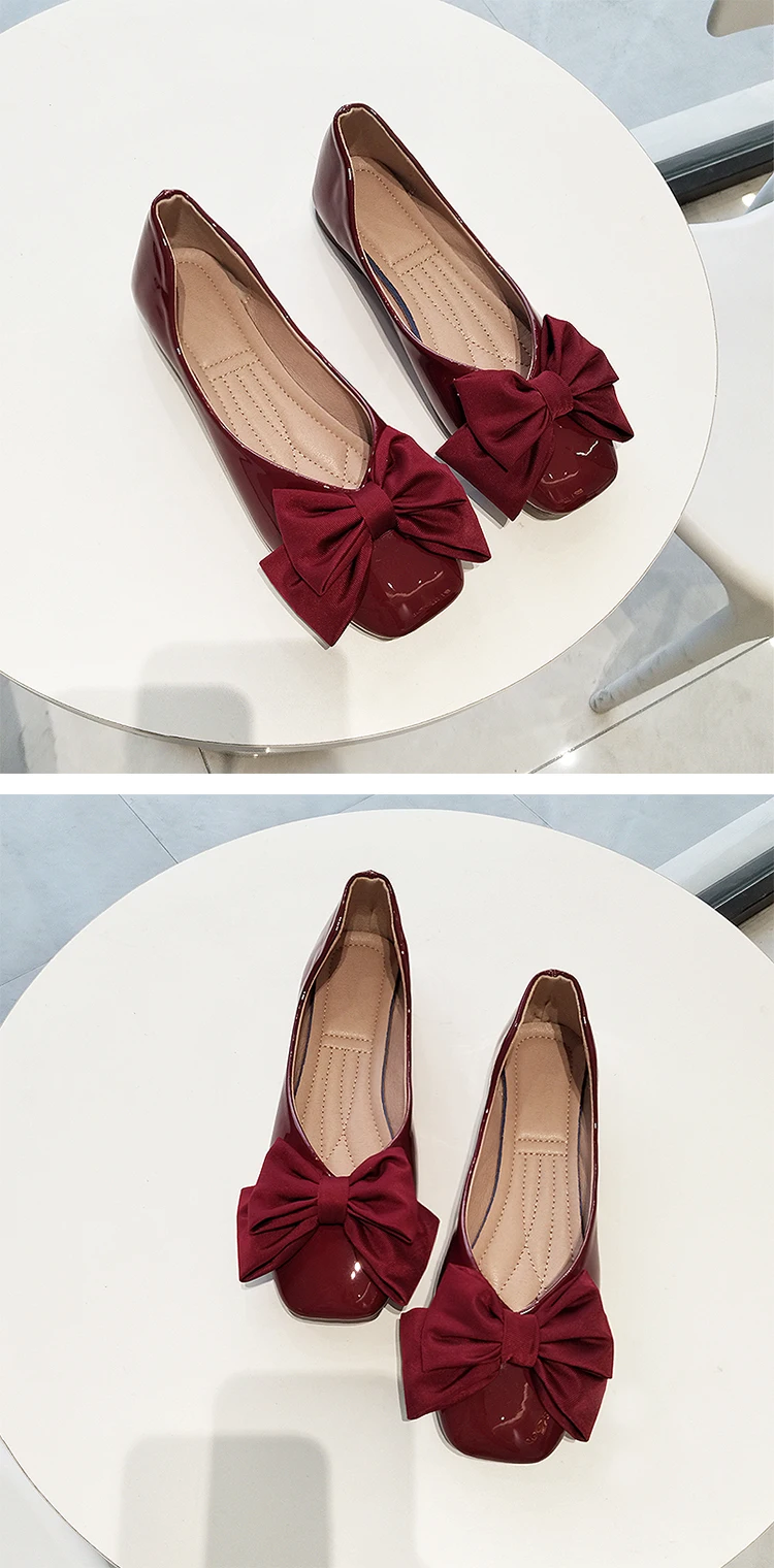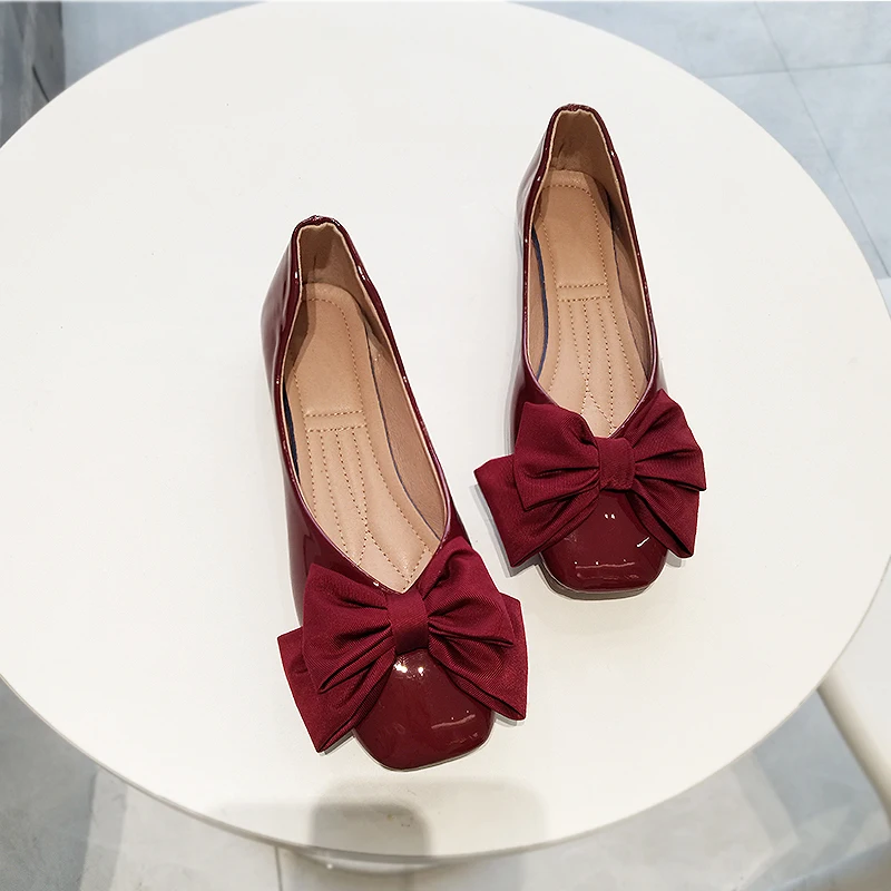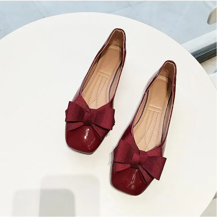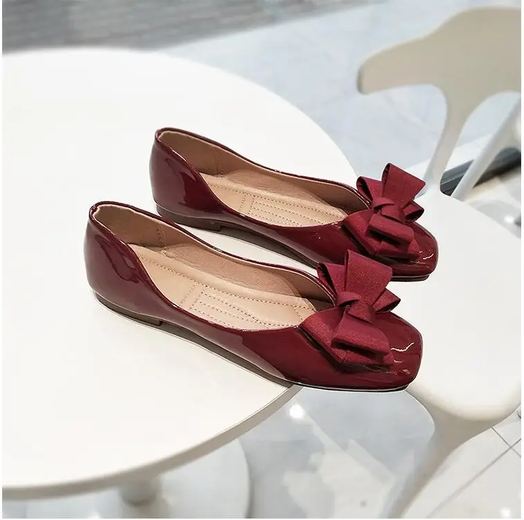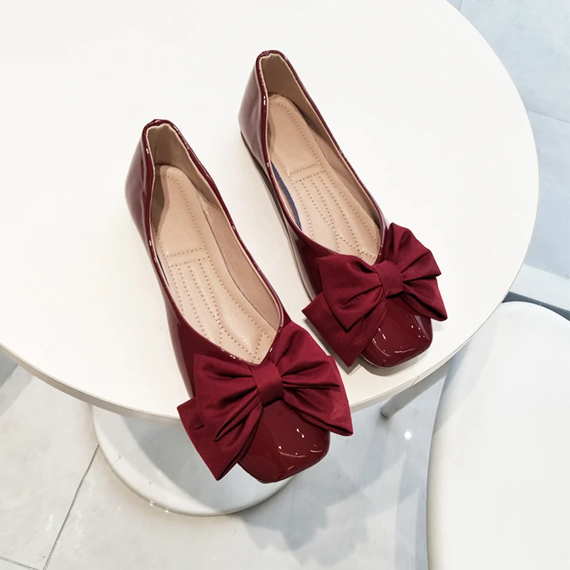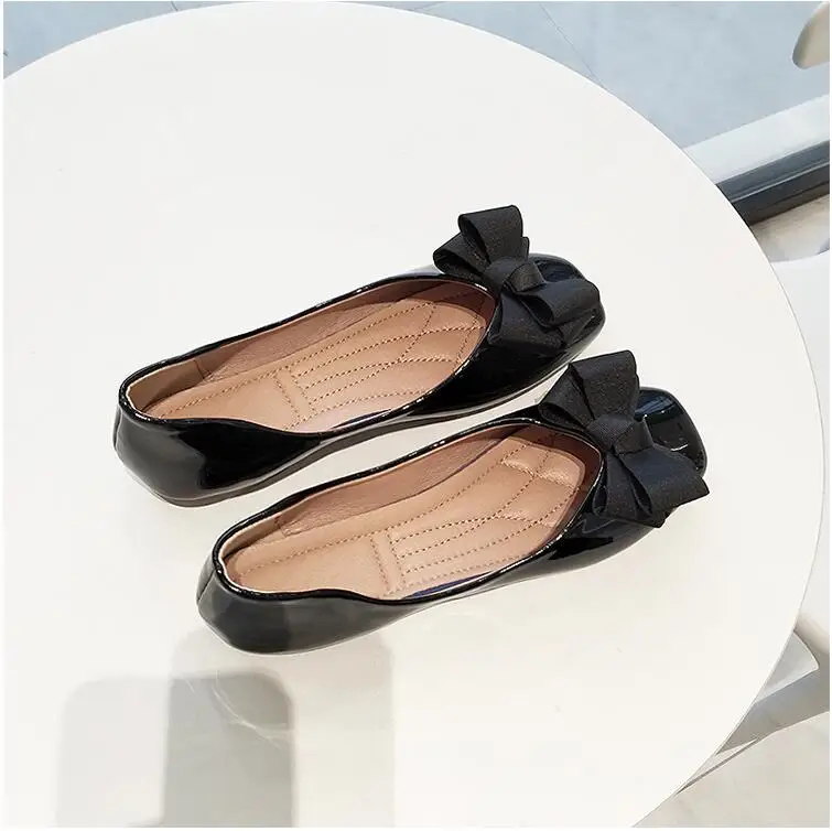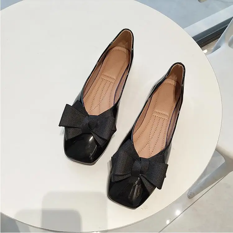 EOEODOIT 2021 новейшая Весенняя кожаная Туфли без каблуков в стиле ретро; Квадратный носок; Балетки с большой бант неглубокие Мокасины