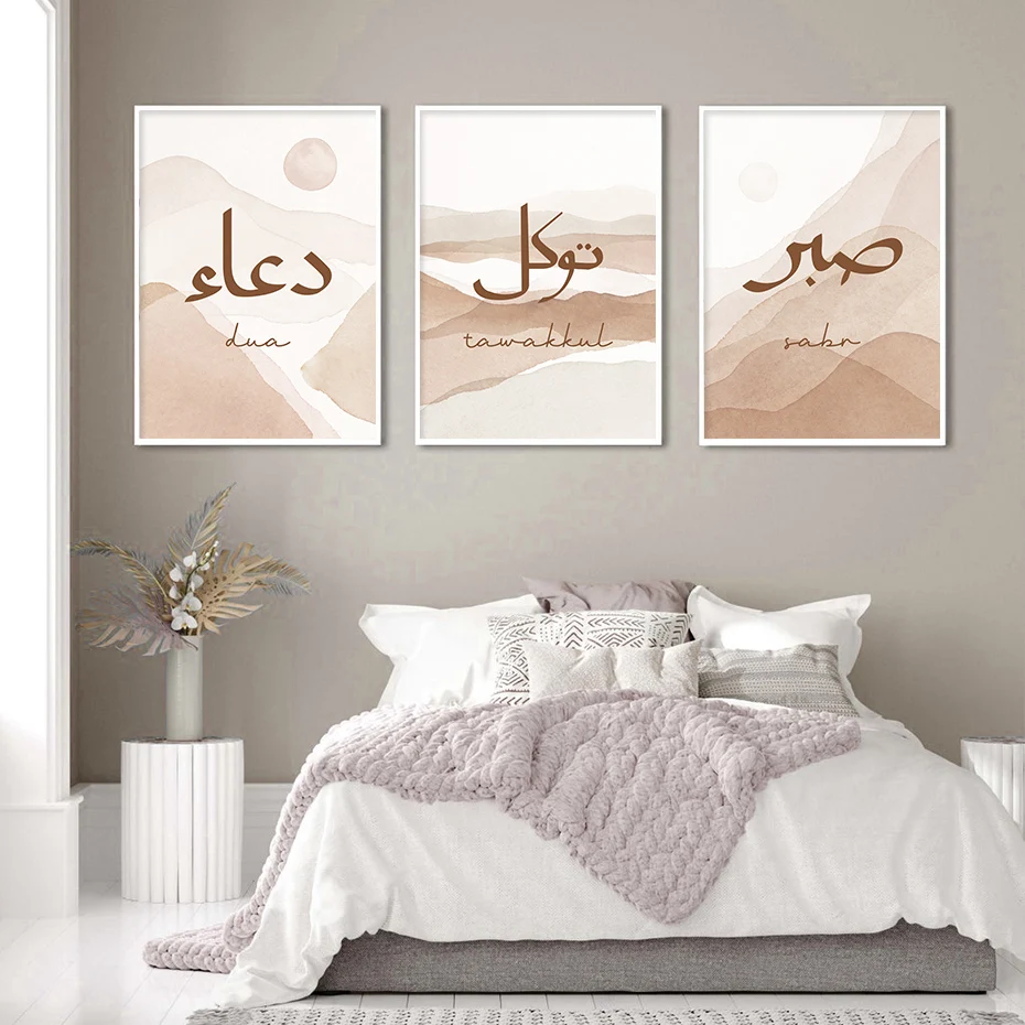 Исламская каллиграфия бежевый Мухаммед здание мира плакаты холст ка...