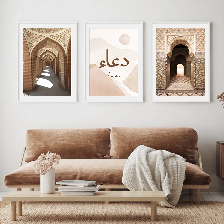 Мусульманская каллиграфия Tawakkul Марокканская Арка Дверь современный постер Картина на холсте Художественная печать картина для спальни интерьер домашний декор