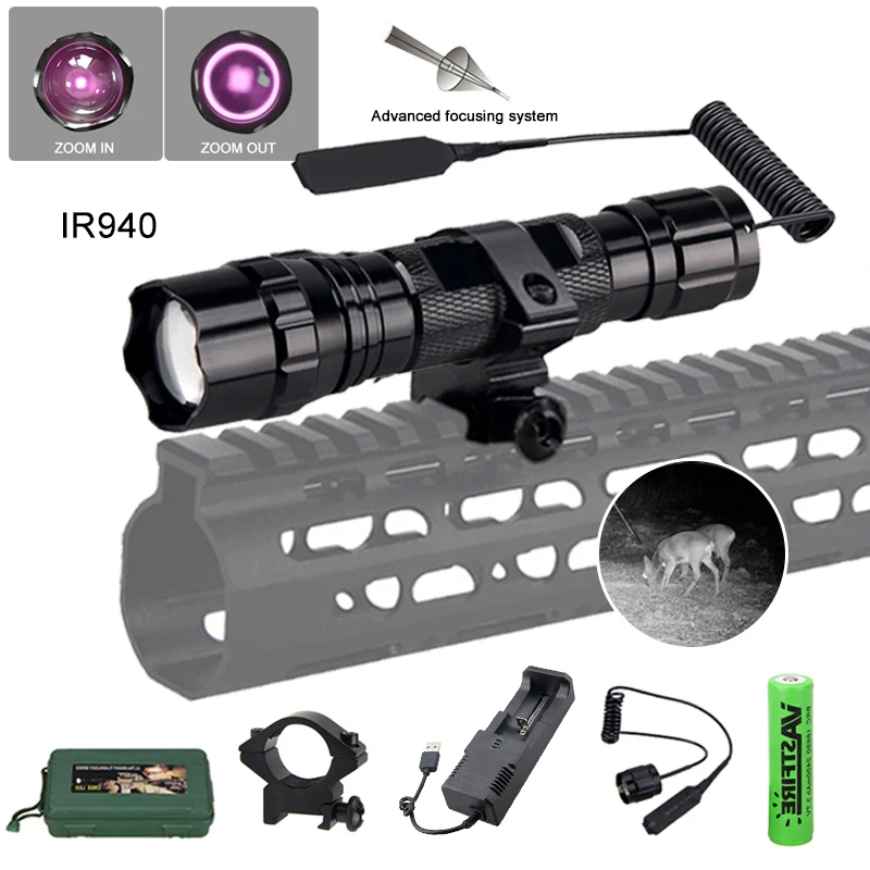 Масштабируемый фокус IR940nm светодиодный ИК-фонарик с инфракрасным излучением лампа ночного видения фонарик прицел крепление дистанционный переключатель 18650