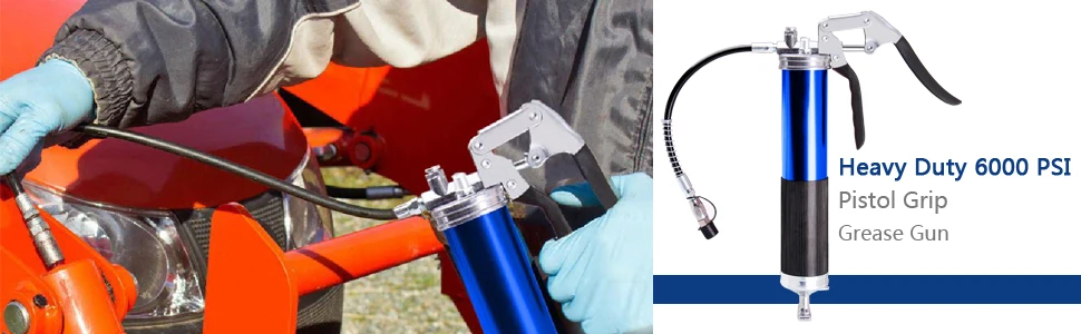 Сверхмощный пистолет с рукояткой для смазки-это полностью функциональный смазочный пистолет. Двойной Аппликаторы в комплекте; 6 дюймовый твердый расширение и 12 дюймов гибкий шланг в комплекте. Предназначен для 3-сторонний выход смазки Загрузка: Стандартный 14 унций, патроны, оптом всасывания и наполнитель/насос с дозатором. Характеристики включают: легкий, без ржавчины анодированный алюминиевый бочонок, сверхмощный пистолет ручка для удобства использования, литая головка Develops6000 PSI рабочее давление, нескользящая резиновая ручка для удобства работы также позволяет быстро менять картридж, быстро и легко, эргономичная Т-образная ручка для надежного захвата и легкого наполнения, Воздушный выпускной клапан быстро устраняет воздушные карманы и Воздушные Замки, съемный сверхмощный муфта без капельного защитного колпачка. Идеальные приложения: автомобильные и трейлеры, сельское хозяйство, промышленные, морские. Ограниченная пожизненная гарантия. Особенности Сверхмощный пистолет ручка для удобства использования 12 дюймов Heavy Duty армированный гибкий шланг с пружинным гвардии Литая головка развивает рабочее давление 6000 PSI Воздушный выпускной клапан быстро устраняет воздушные карманы Включает в себя 6 дюймовый твердый наращивания на заколках и нескользящим резиновым держателем Цвет: черный