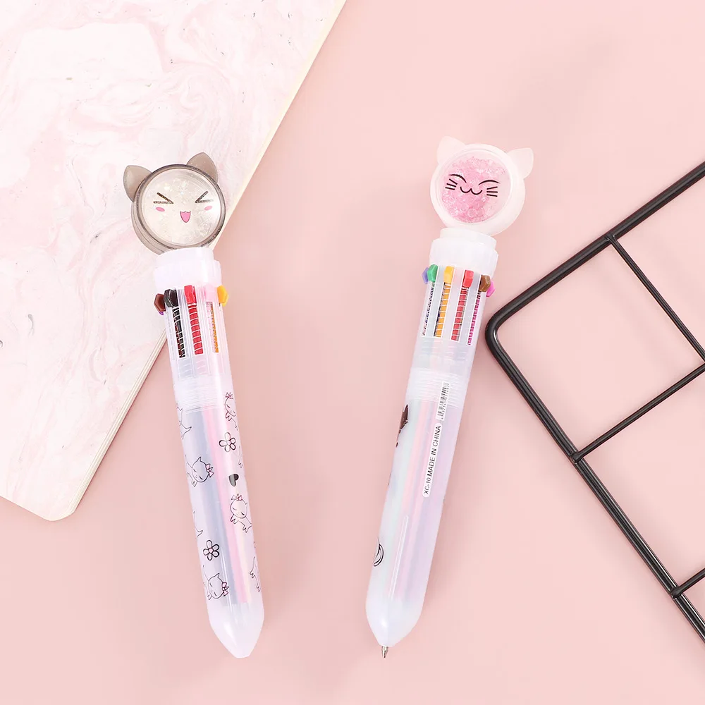 Креативные милые сладкие шариковые ручки с кошкой для пишущих принадлежностей, школьные и офисные принадлежности, разноцветные, со сверлением, маркеры, шариковые ручки