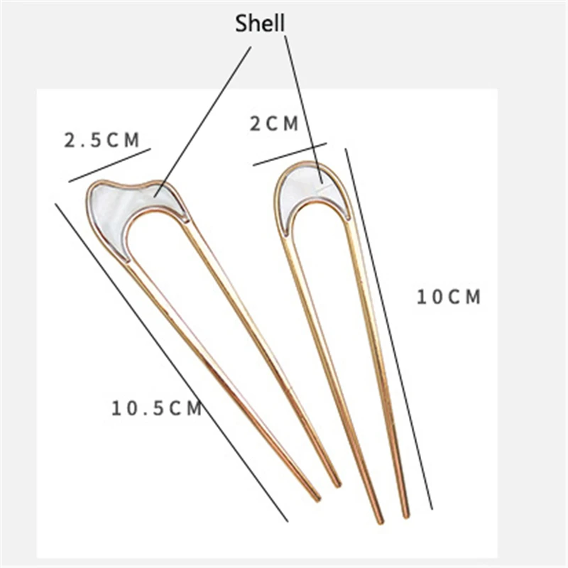 Заколки для волос женские U-образной формы, металлические, с ракушками