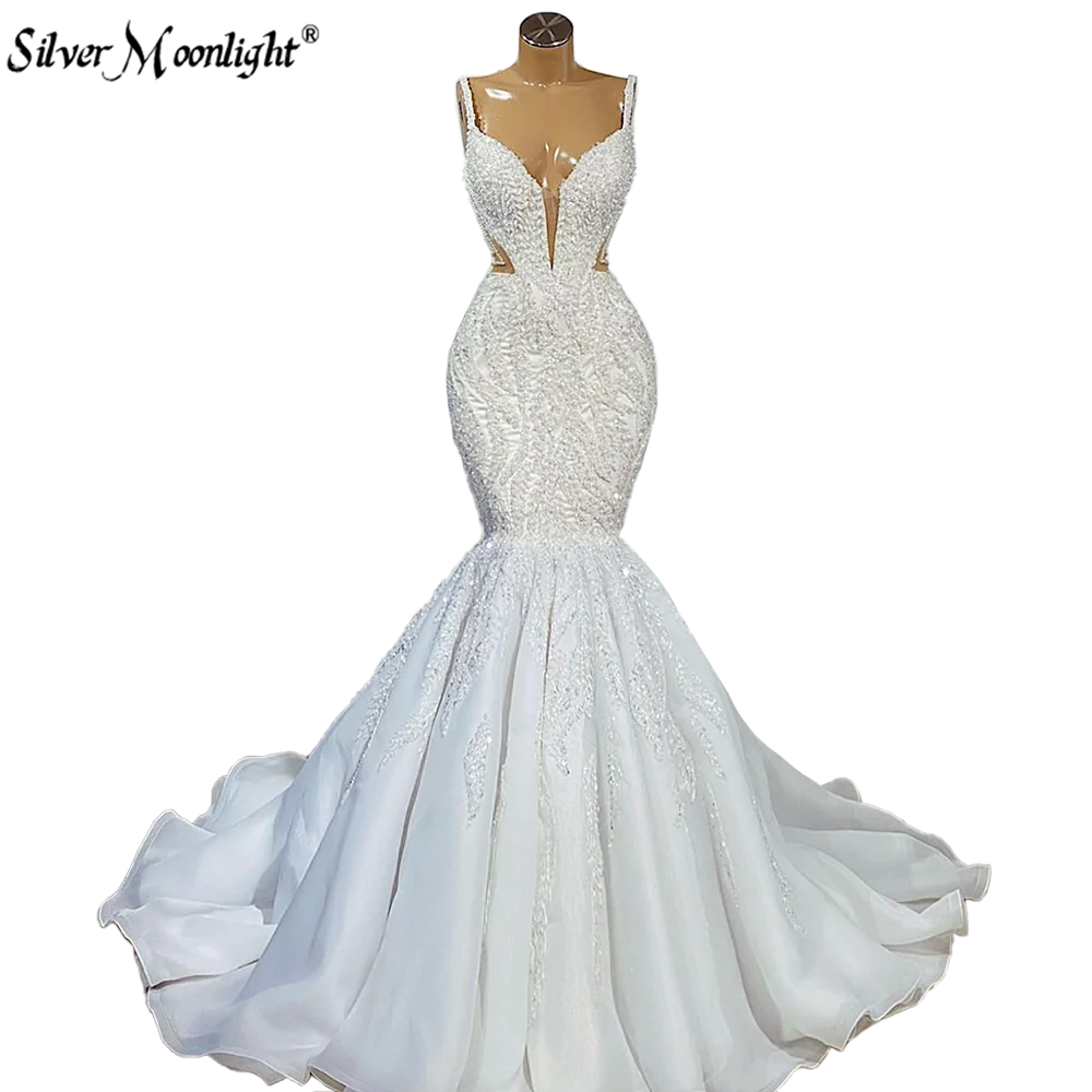 Роскошное Свадебное платье с бусинами и юбкой-годе, свадебное платье с V-образным вырезом, свадебное платье на бретелях-спагетти, платье принцессы, свадебные платья, платья для невесты