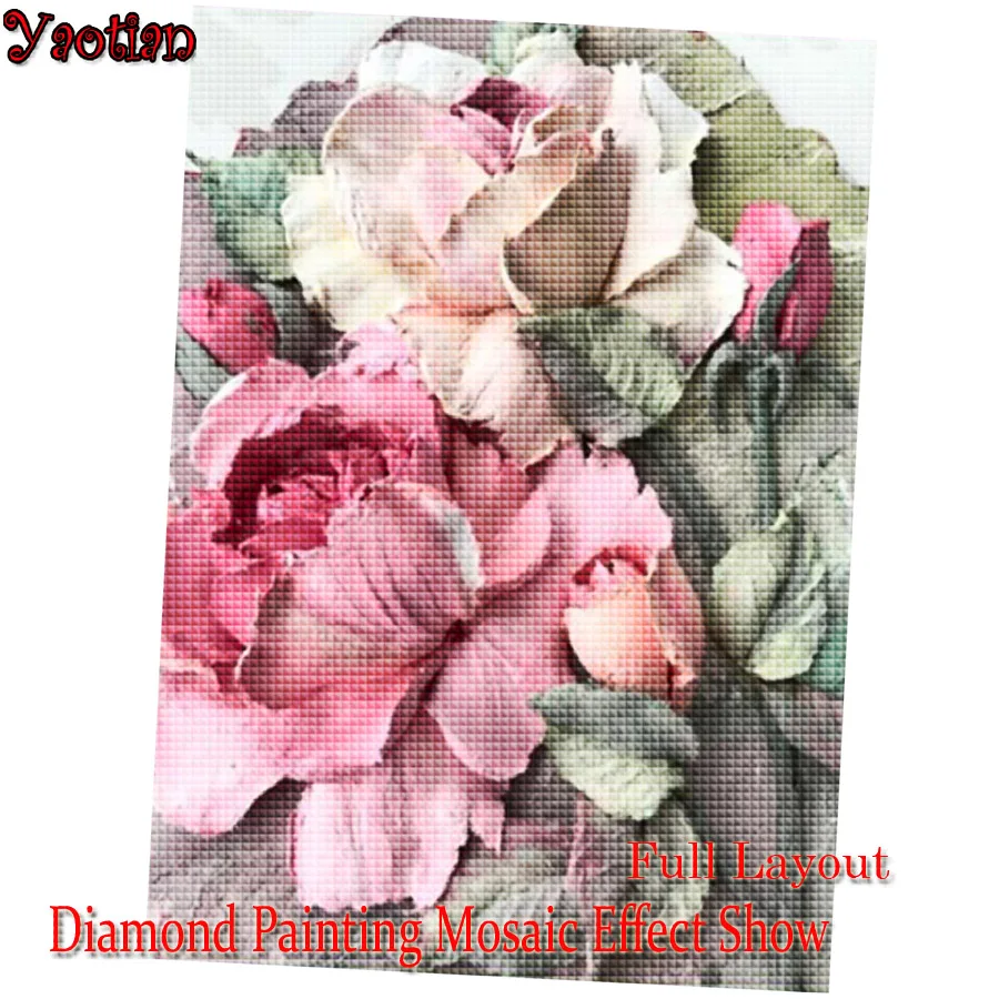 Алмазная живопись цветы и растения, картина с удивительными пионами, Круглая Мозаика, вышивка крестиком, ручная работа