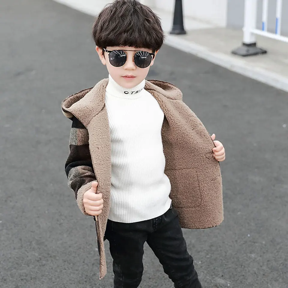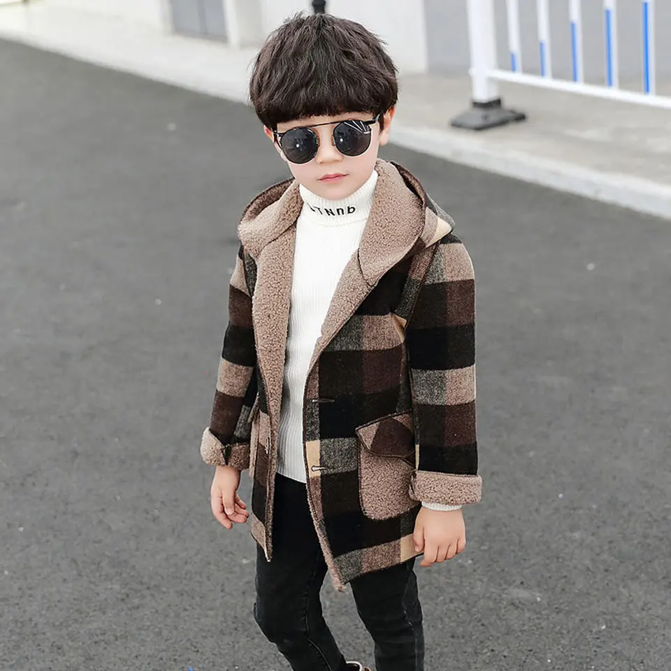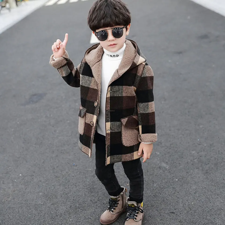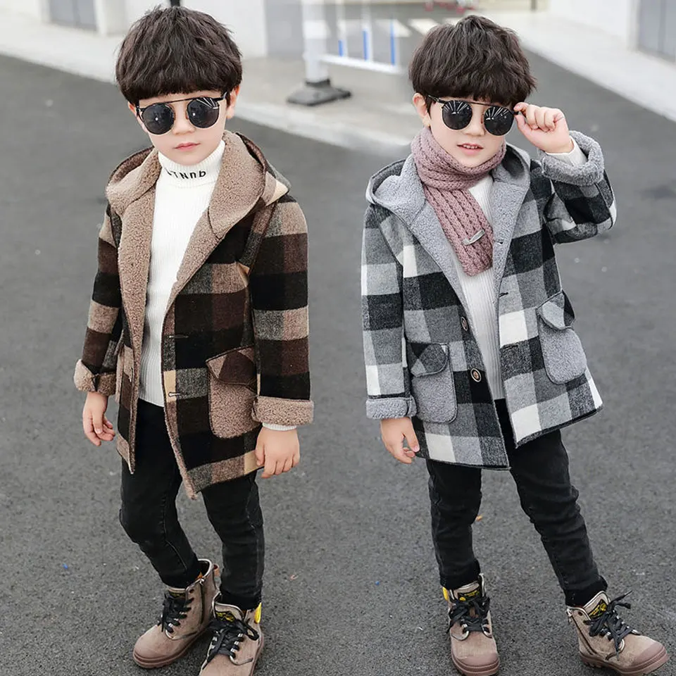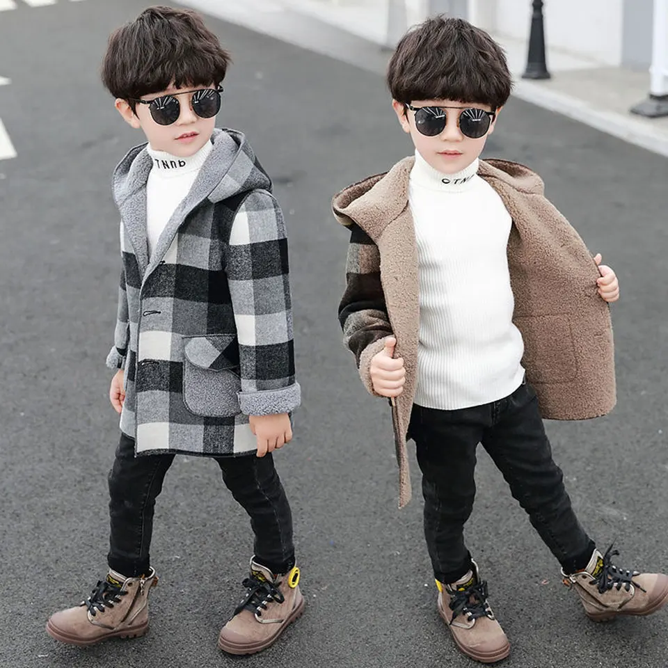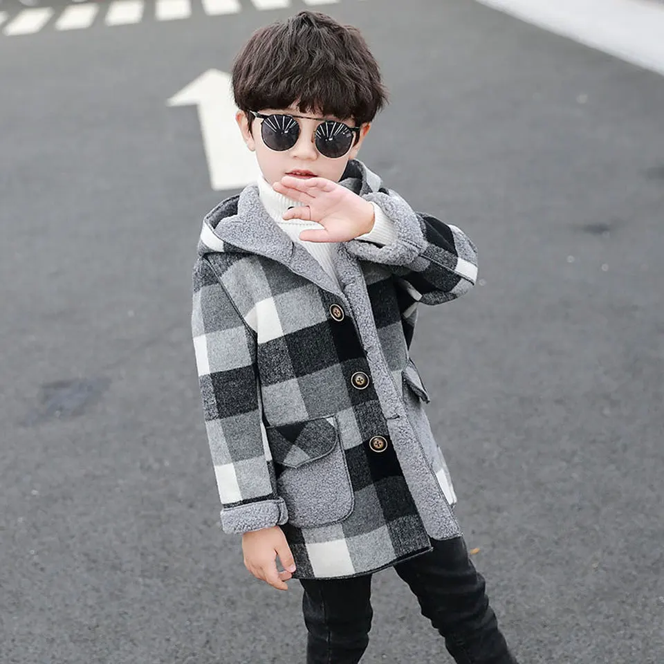 Новое поступление, детское пальто на осень и зиму 2021, детская верхняя одежда для маленьких мальчиков, повседневные шерстяные пальто в клетку для 2T, 3T, 4, 6, 8, 10, 12 лет