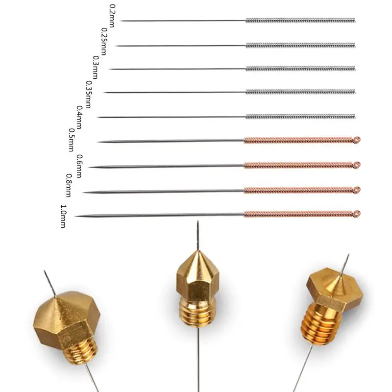 Подходит для всех 0,2/0,25/0,3/0,35/0,4/0,5/0,6/0,8/1 мм сопла для 3D-принтера на рынке.