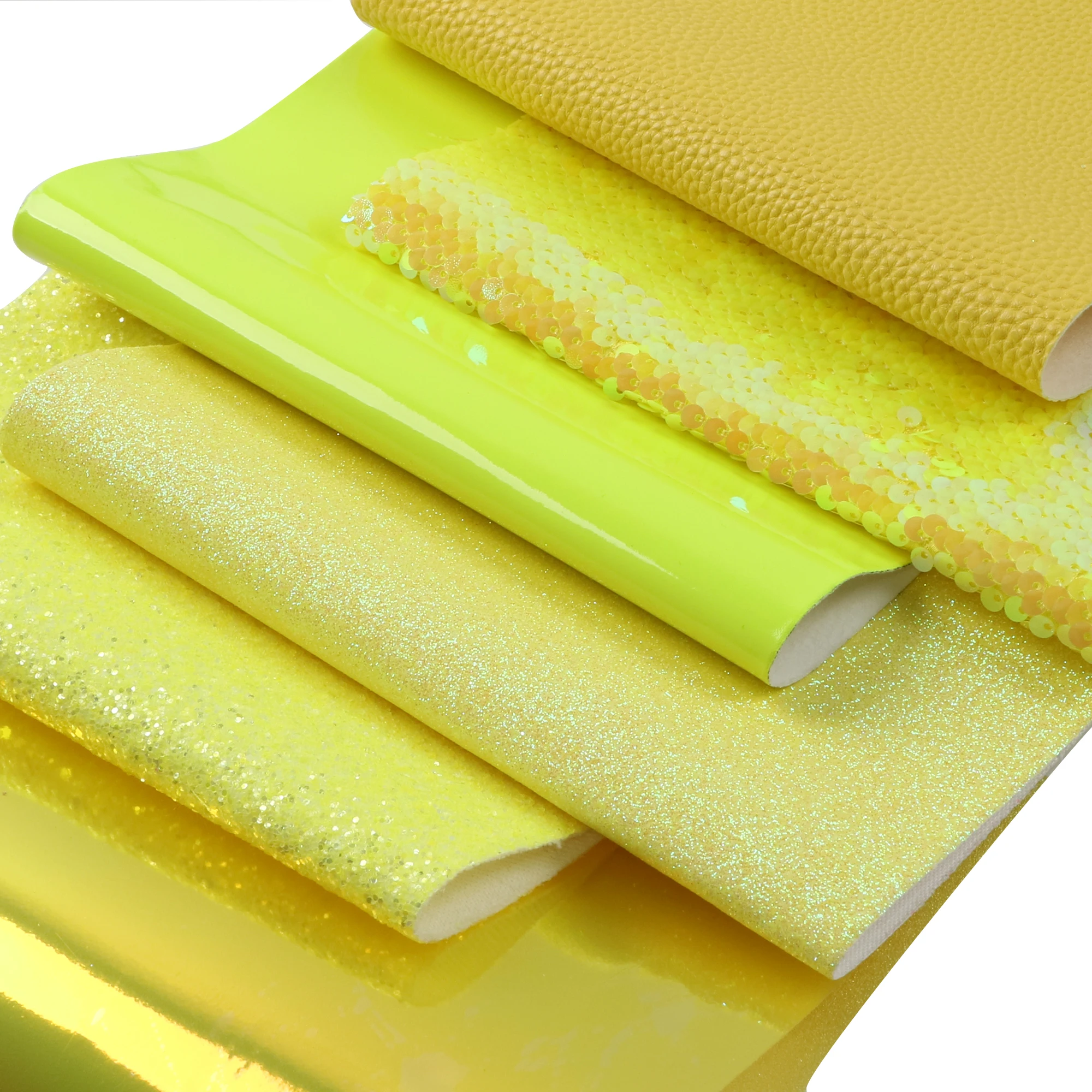 Желтая серия, однотонные листы из искусственной кожи, блестящие кружева, глянцевая Синтетическая кожаная ткань, размер A4, для поделок, сережек, бантов