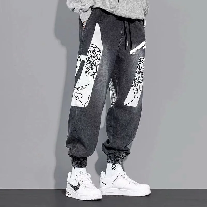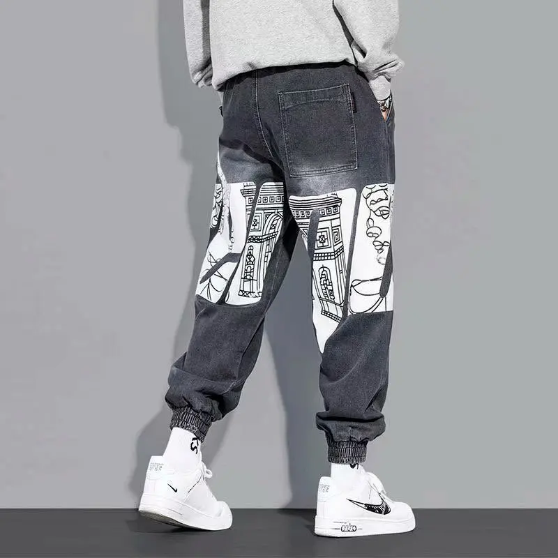 Мужские осенние свободные размера плюс синего джинсового цвета джинсы с героями мультфильмов аниме карго штаны шаровары