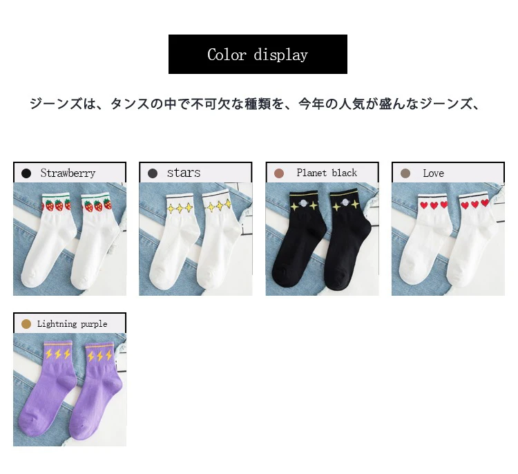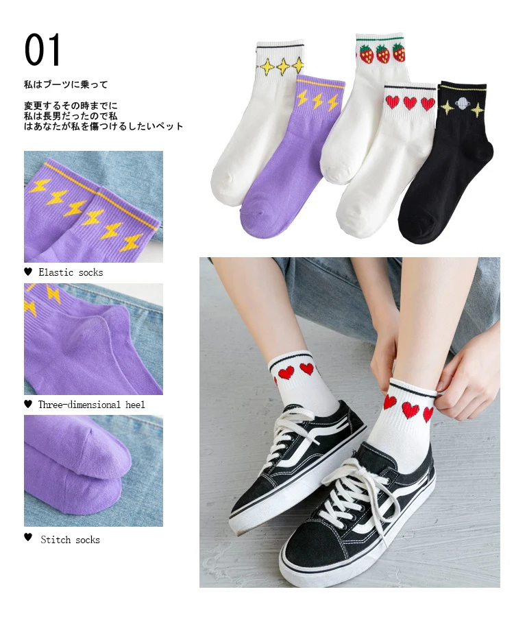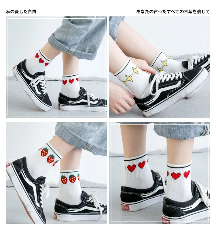 Милые носки в Корейском стиле с принтом клубники и звезд; calcetines deportivos; Цвет белый, черный; Женская обувь; chaussette femme kawaii socken