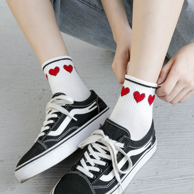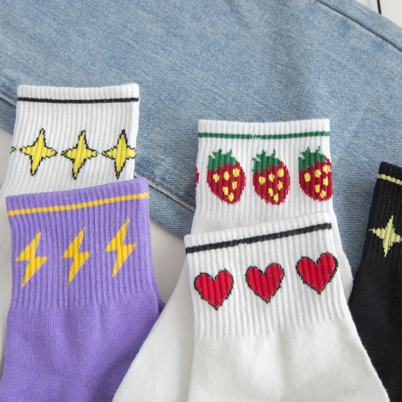 Милые носки, дизайнерские носки в Корейском стиле с принтом клубники и звезд, белые и черные женские носки, милые женские носки