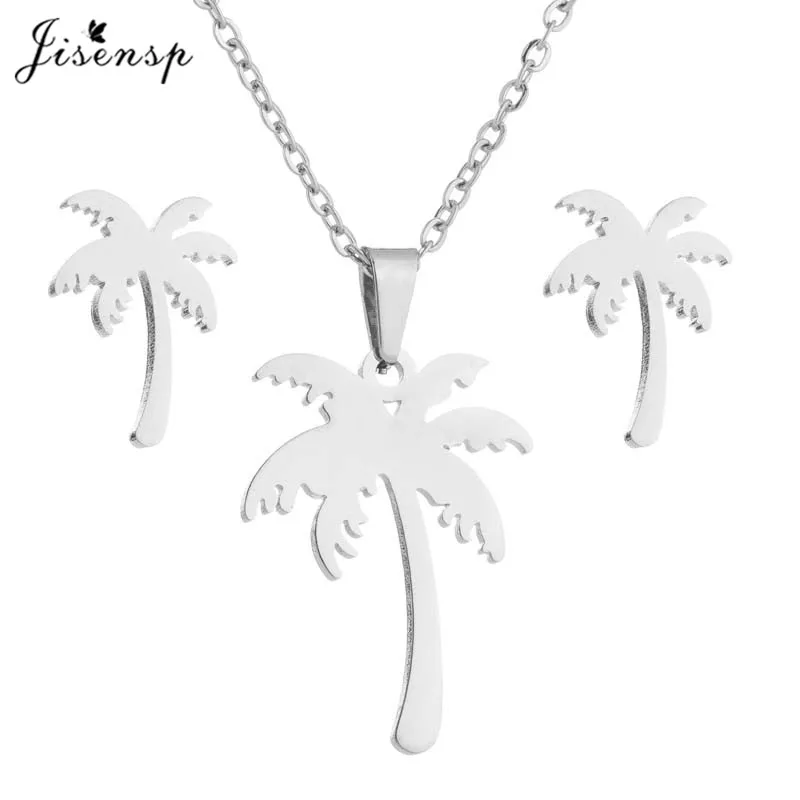 Ювелирные наборы Jisensp из нержавеющей стали, богемный, с подвеской в виде кокоса, колье, серьги, модные украшения для женщин и мужчин, Новогодний подарок