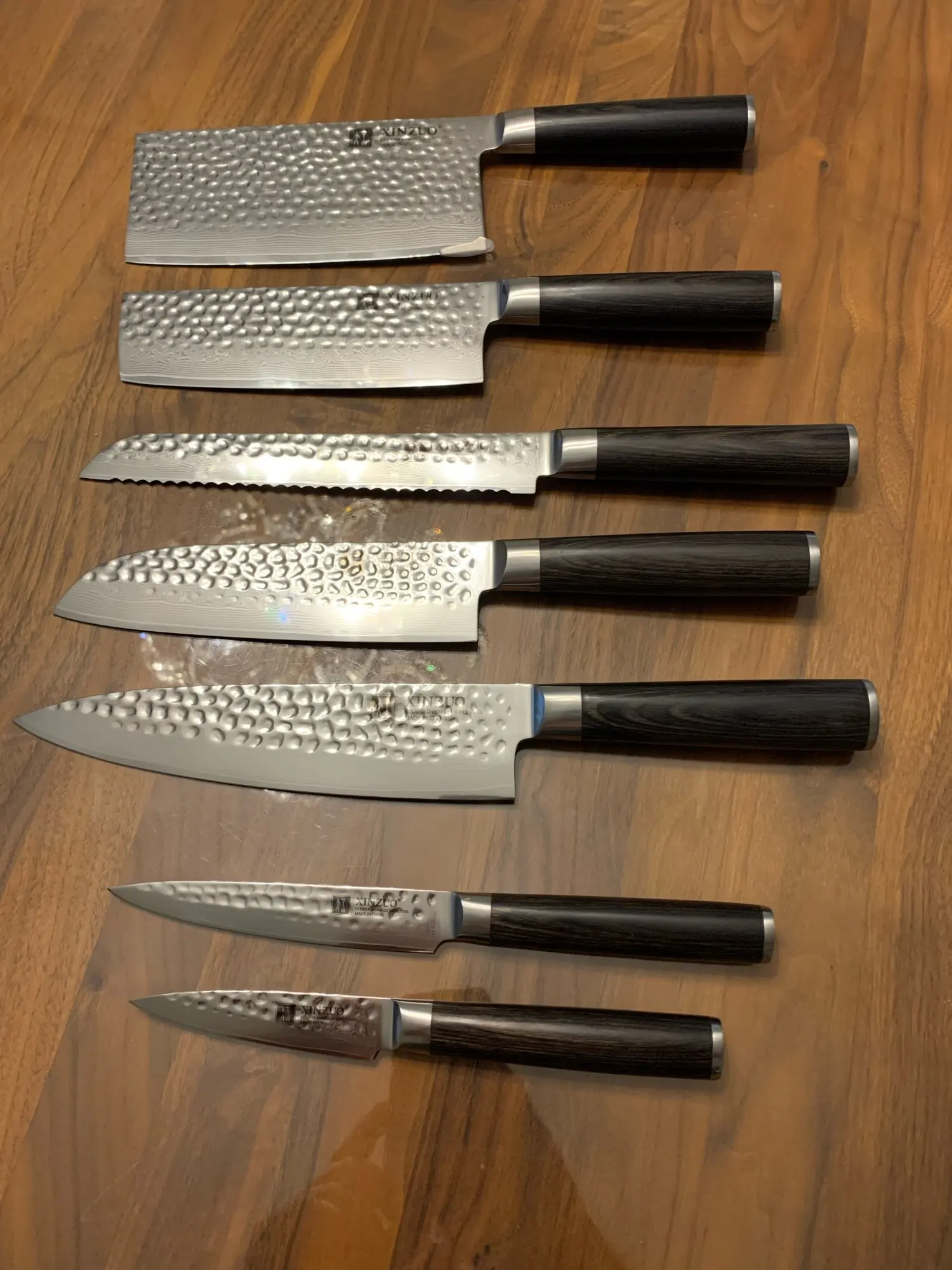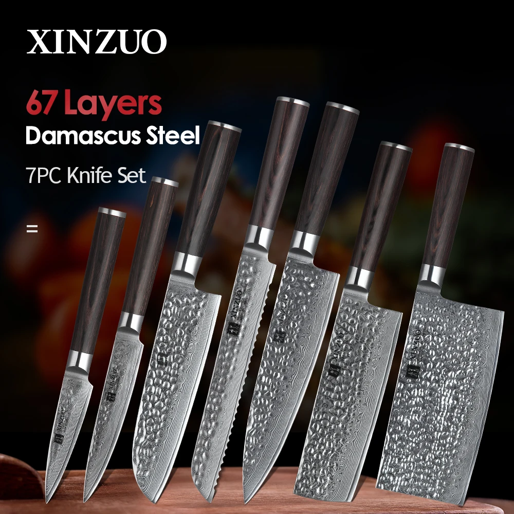 Набор кухонных ножей XINZUO VG10, 7 шт., лезвия из нержавеющей стали, дамасский наборы шеф-ножей, наборы ножей, сантоку, для очистки овощей, кухонные инструменты