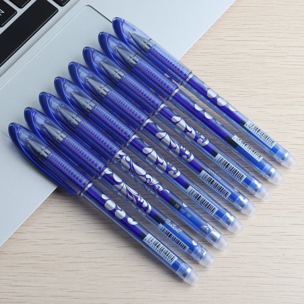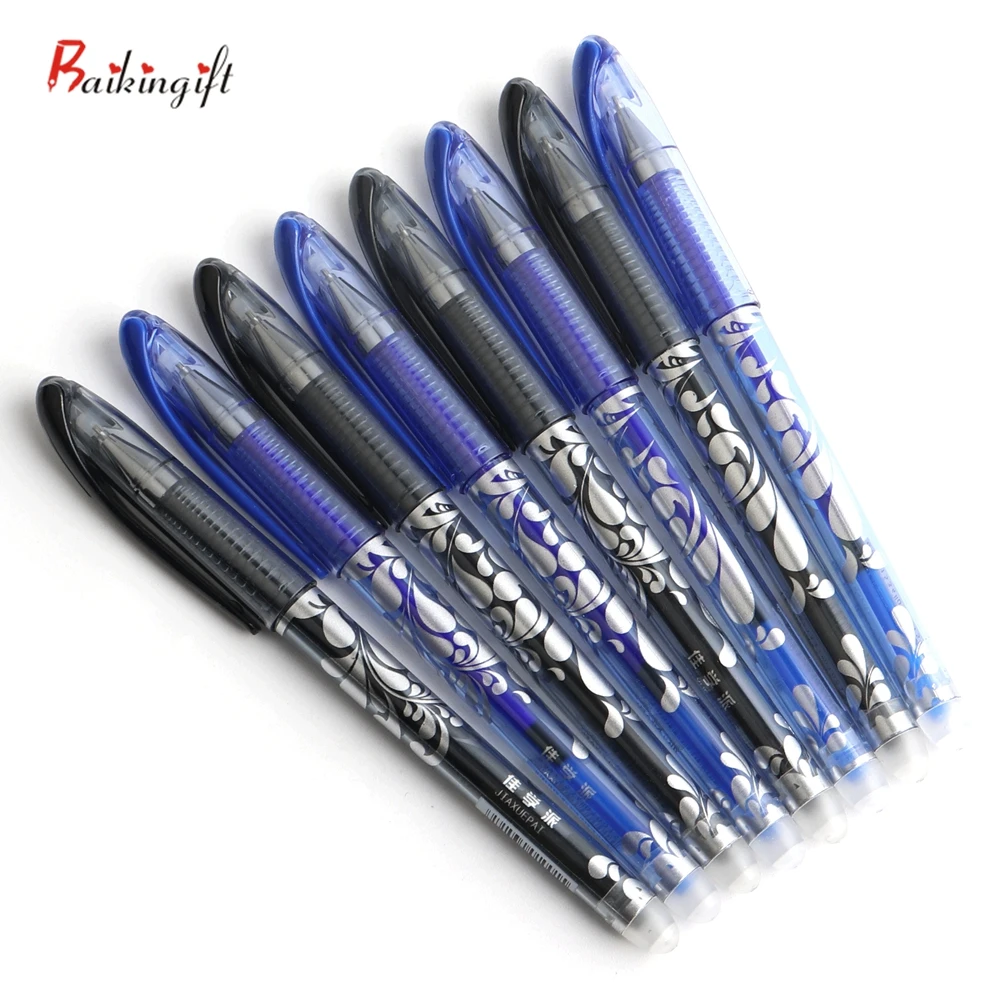 -Название: стираемая ручка и стержни -Точка письма: 0,5 мм -Размер ручки: длина ручки: 14,8 см, длина заправки: 12,9 см -Количество: ручка 4 шт/заправки 20 шт -Цвет чернил: синий/черный на выбор -Прямая поставка: Поддержка -100% новый и высококачественный