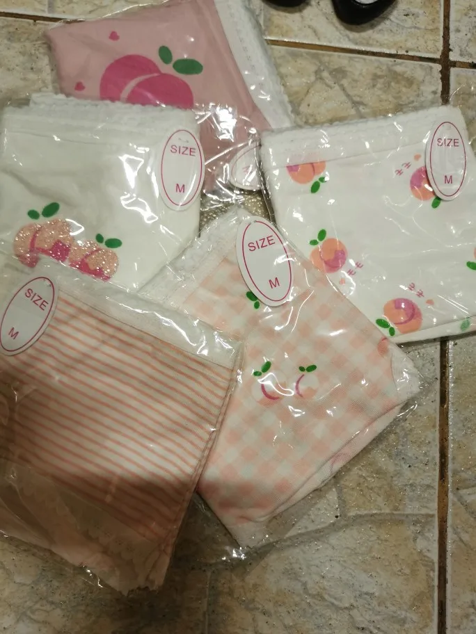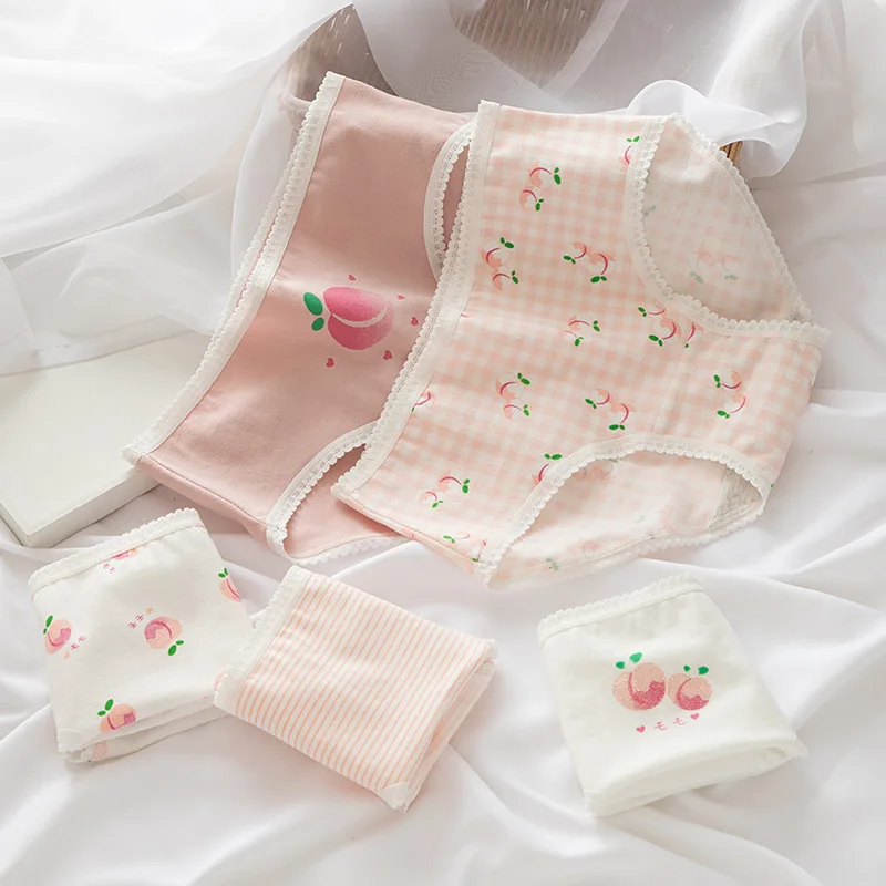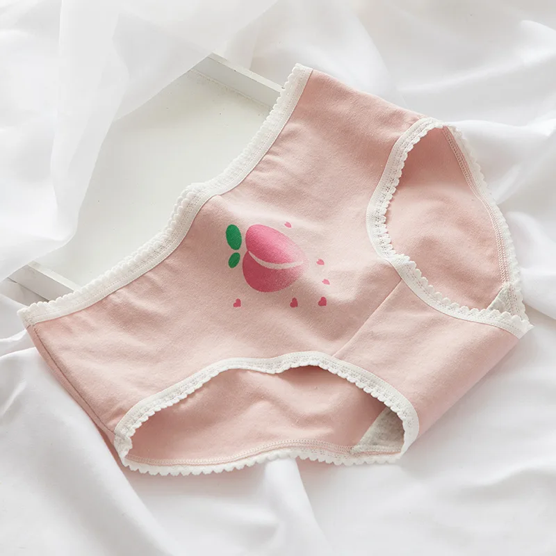 Комплект женского нижнего белья в Стиле Лолита, розовые трусы с принтом персика, хлопковые трусы для студентов, милое нижнее белье, 15