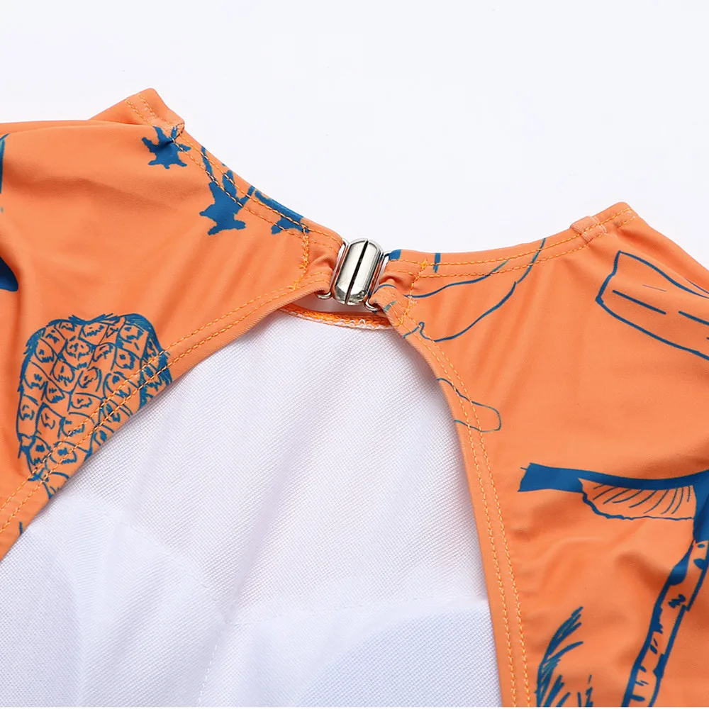 Сексуальный цельный купальный костюм с длинным рукавом, Женская рубашка для плавания и серфинга с УФ-принтом, купальный костюм с открытой спиной, спортивный Рашгард
