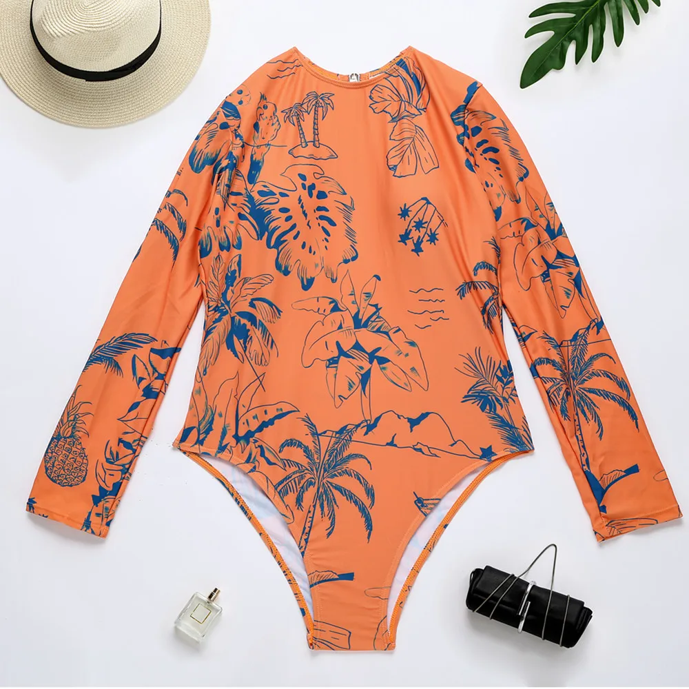 Женский слитный купальник на молнии, с длинным рукавом, с принтом, ...