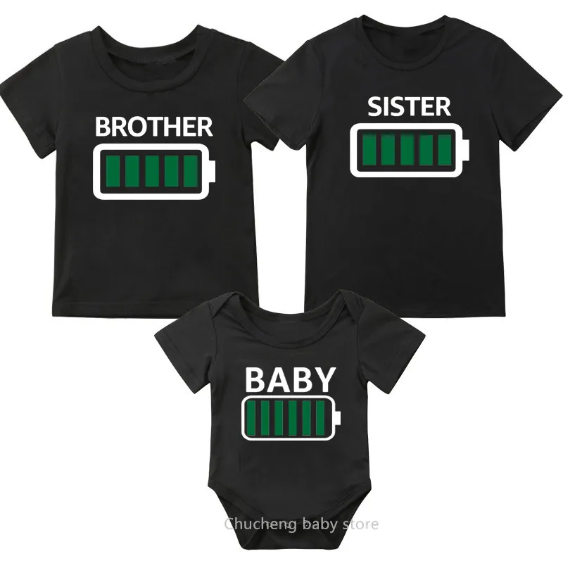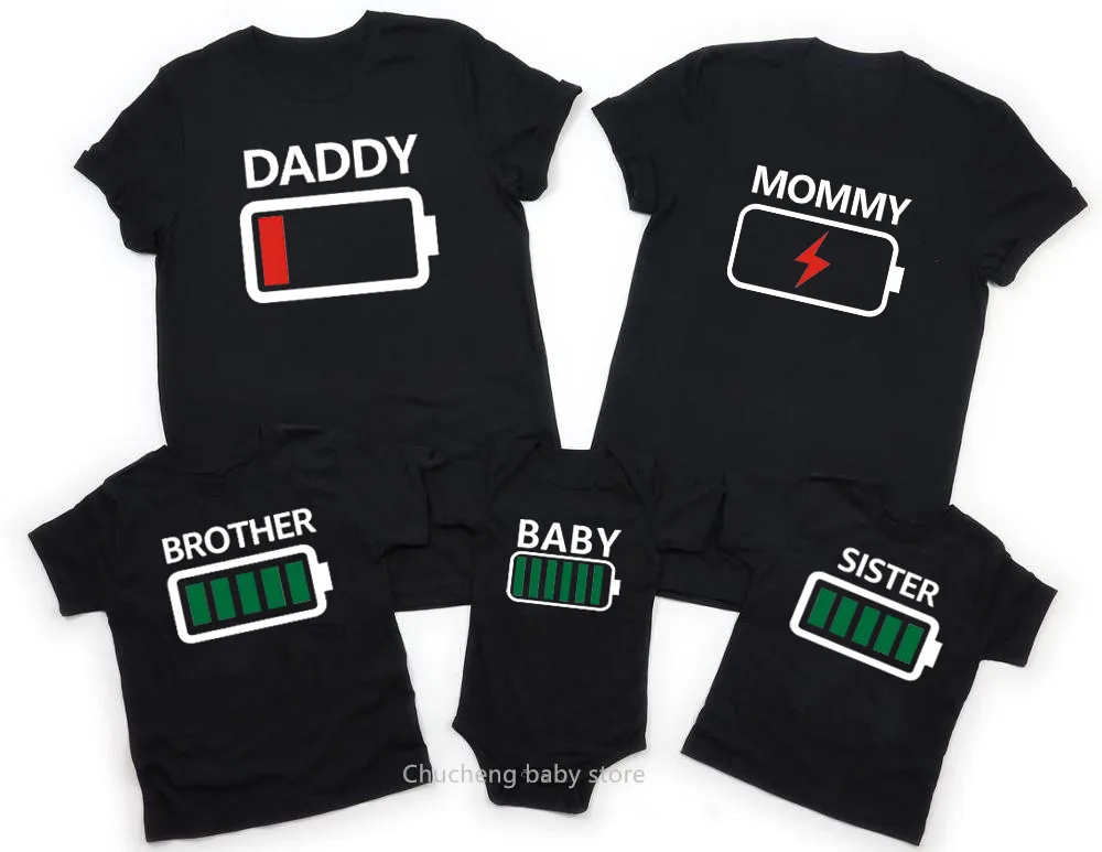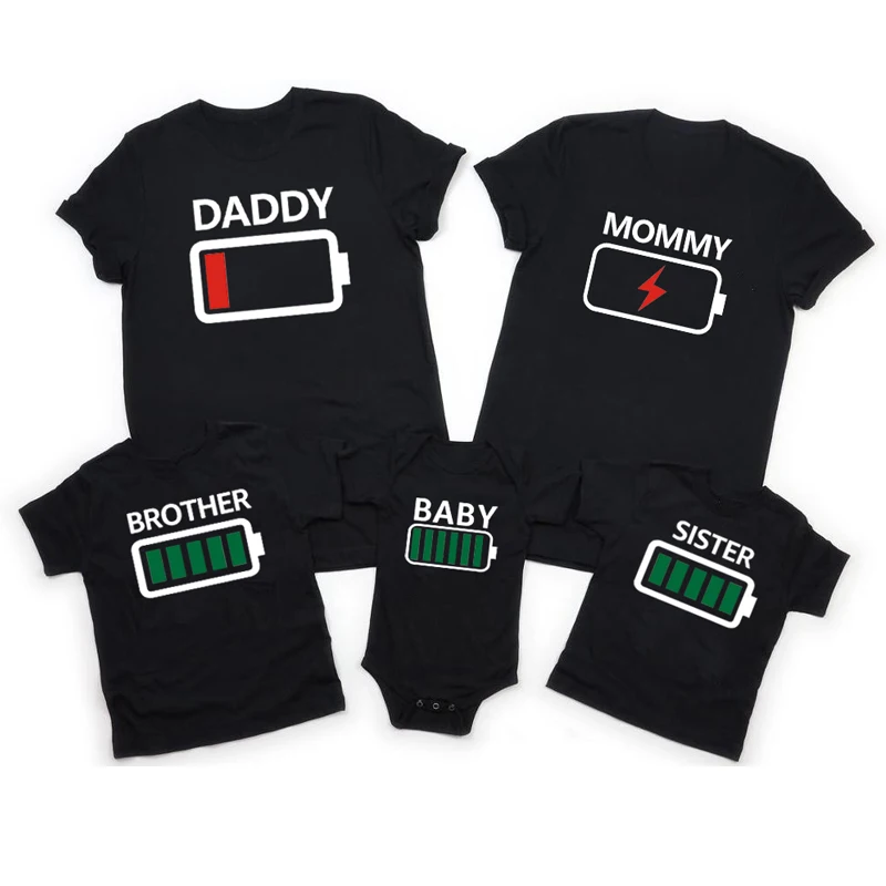 Футболка для мальчиков и девочек, семейная одежда, забавная футболка с батарейками, для папы, мамы, брата, сестры