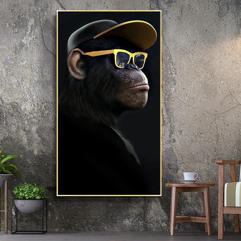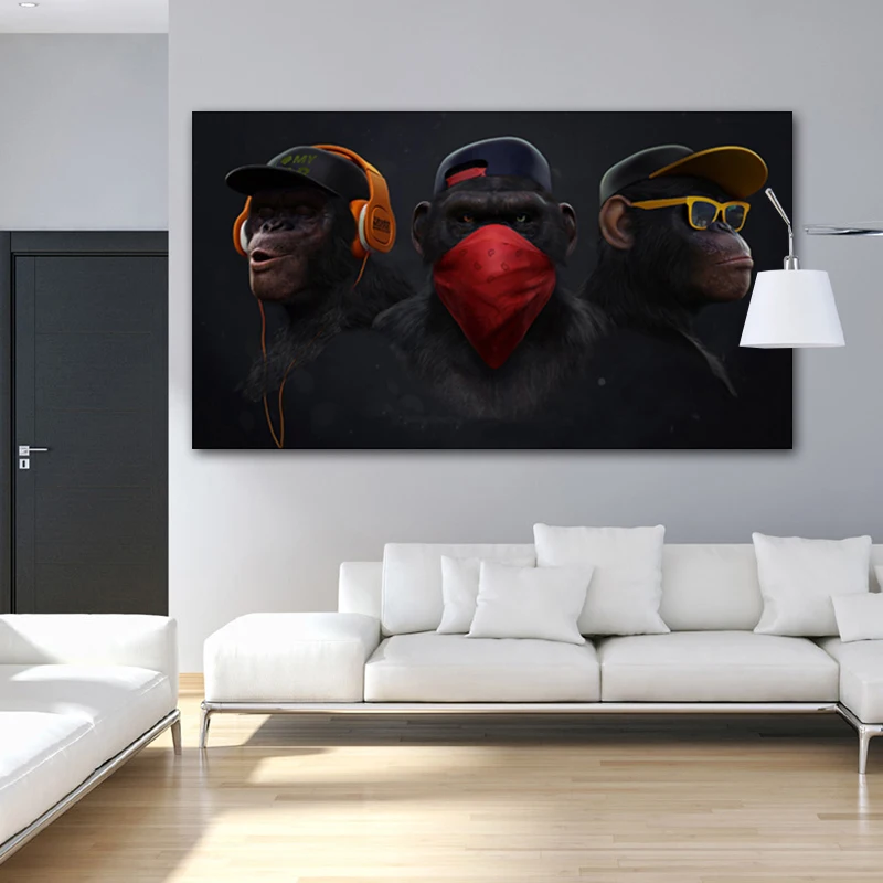 Картина с забавными животными, рисунок гориллы на холсте, наушники,...