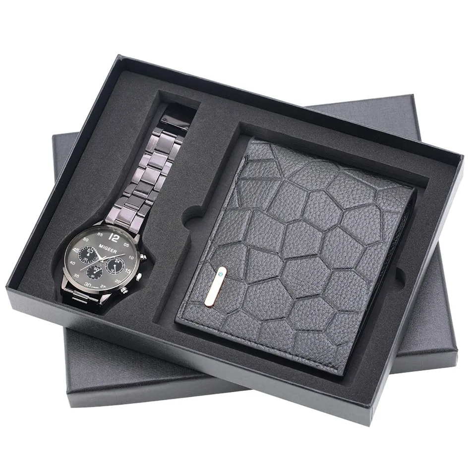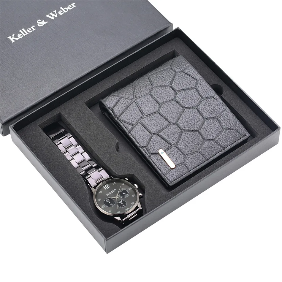 Мужские кварцевые часы с хронографом и кошельком, в подарочной коробке
