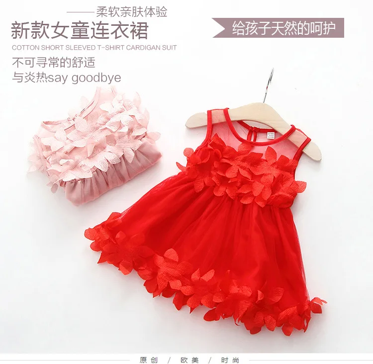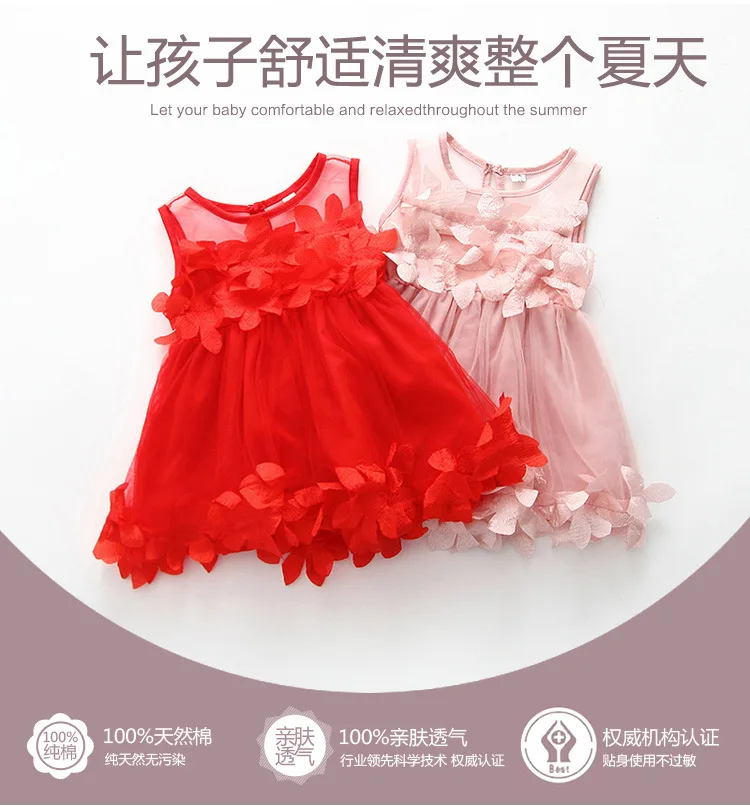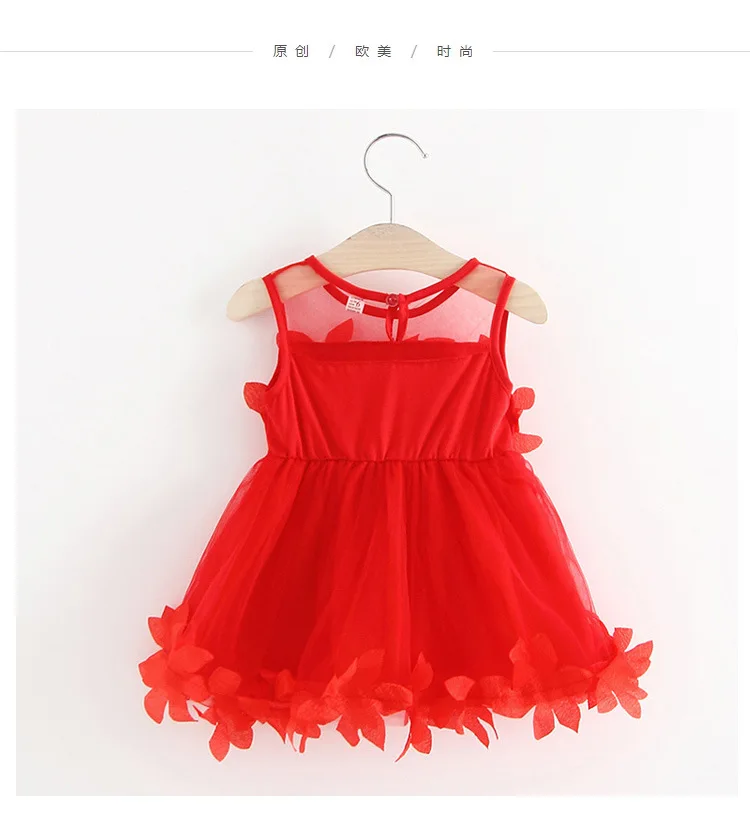 Летняя одежда для новорожденных модное кружевное Сетчатое красное платье принцессы без рукавов для малышей Одежда для маленьких девочек платья для малышей 2005-1