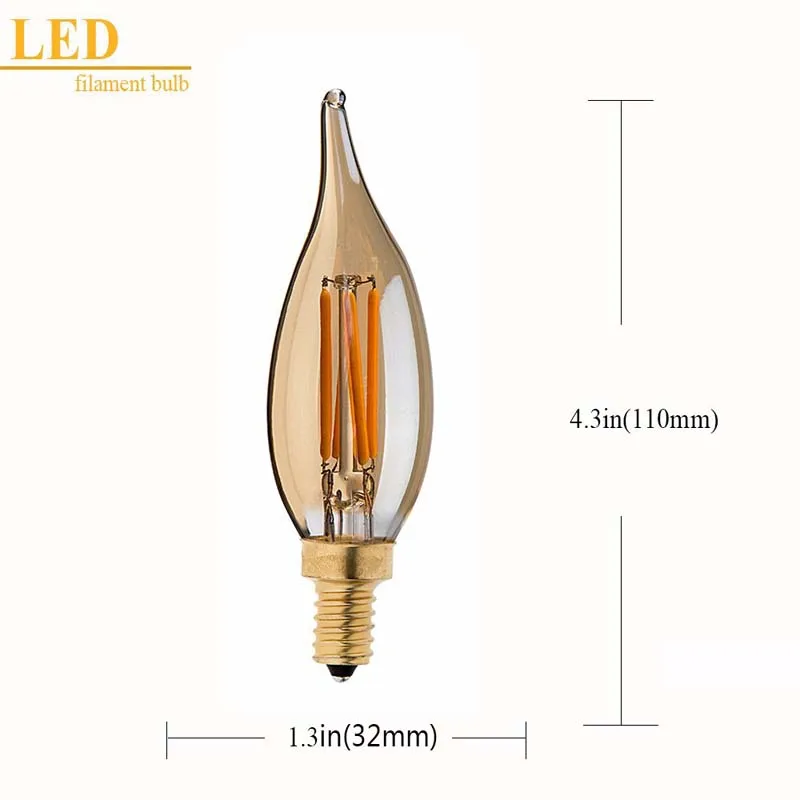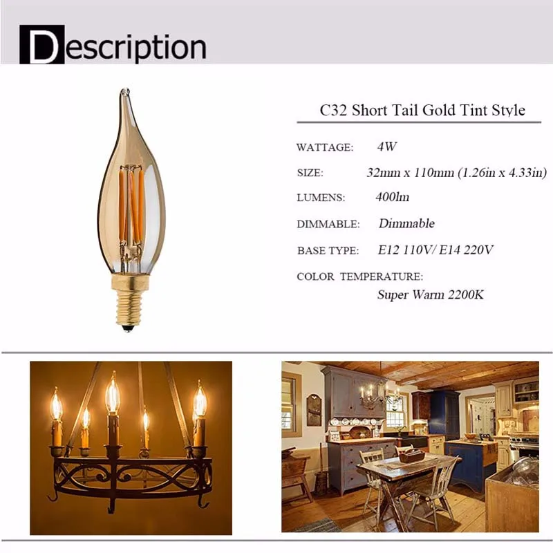 10 шт. C32T Янтарный 110V-220V напряжение 4W светодиоидная лампа с регулируемой яркостью лампы держатель E12 E14 2200K теплый желтый энергосберегающие лампы в форме свечи светильник хрустальный светильник