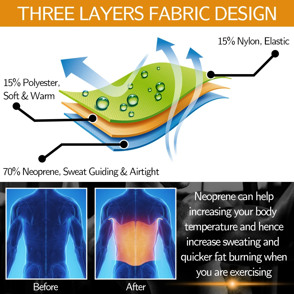 Изготовлен из неопрена и полиэфирных синтетических материалов, дышащий и регулируемый, достаточно гибкий, чтобы двигаться, помогает быстро потеть