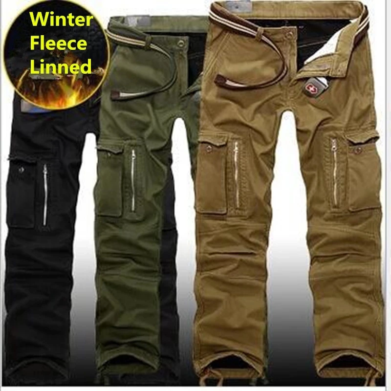 Для мужчин штаны-карго зима плюс флис толстые теплые брюки для мужс...