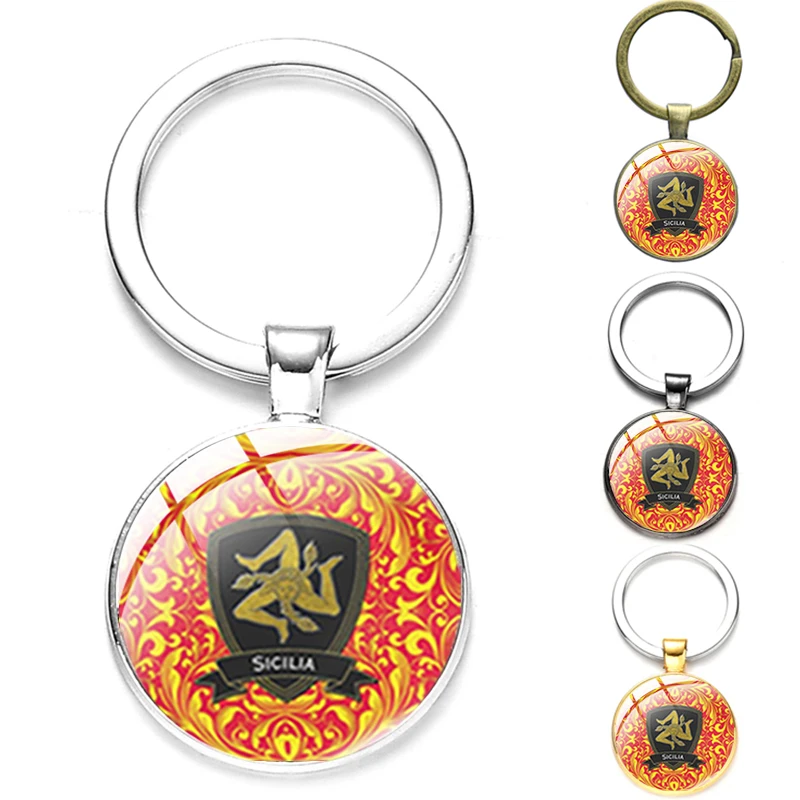 Брелок с изображением Сицилии Trinacria, стеклянный круглый металли...