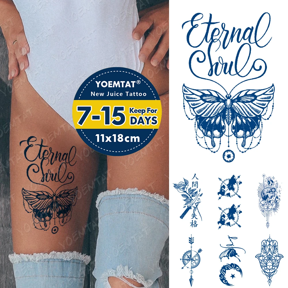 Сок прочного Водонепроницаемый Временная тату-наклейка для бабочка с надписями на английском языке китайский вспышкой чернила для татуировок для боди-арта с имитацией татуировки наклейки переводные тату татуировки врем