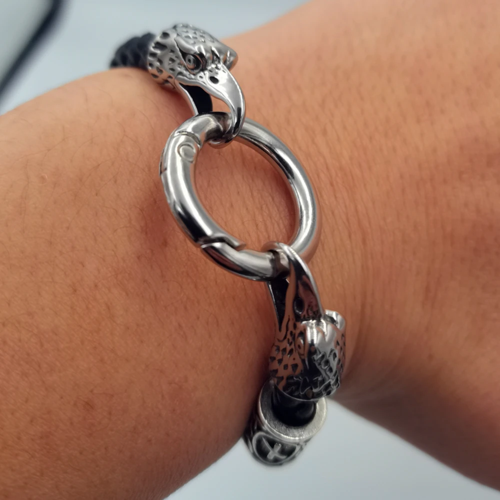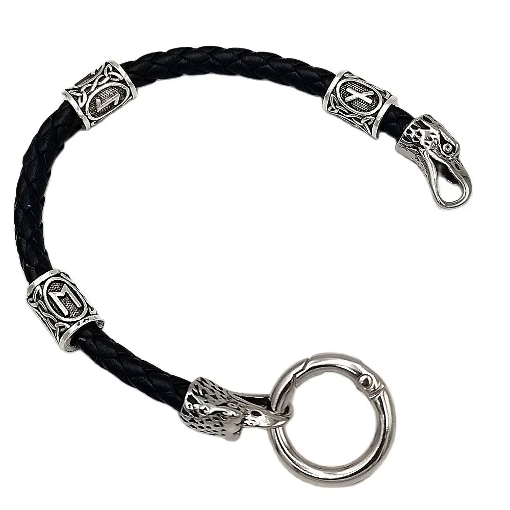 Руна викингов из нержавеющей стали для мужчин и женщин с головой орла, кожаные браслеты с бисером, один, Ворон, норвежский стиль, браслет на запястье