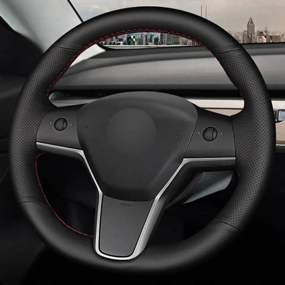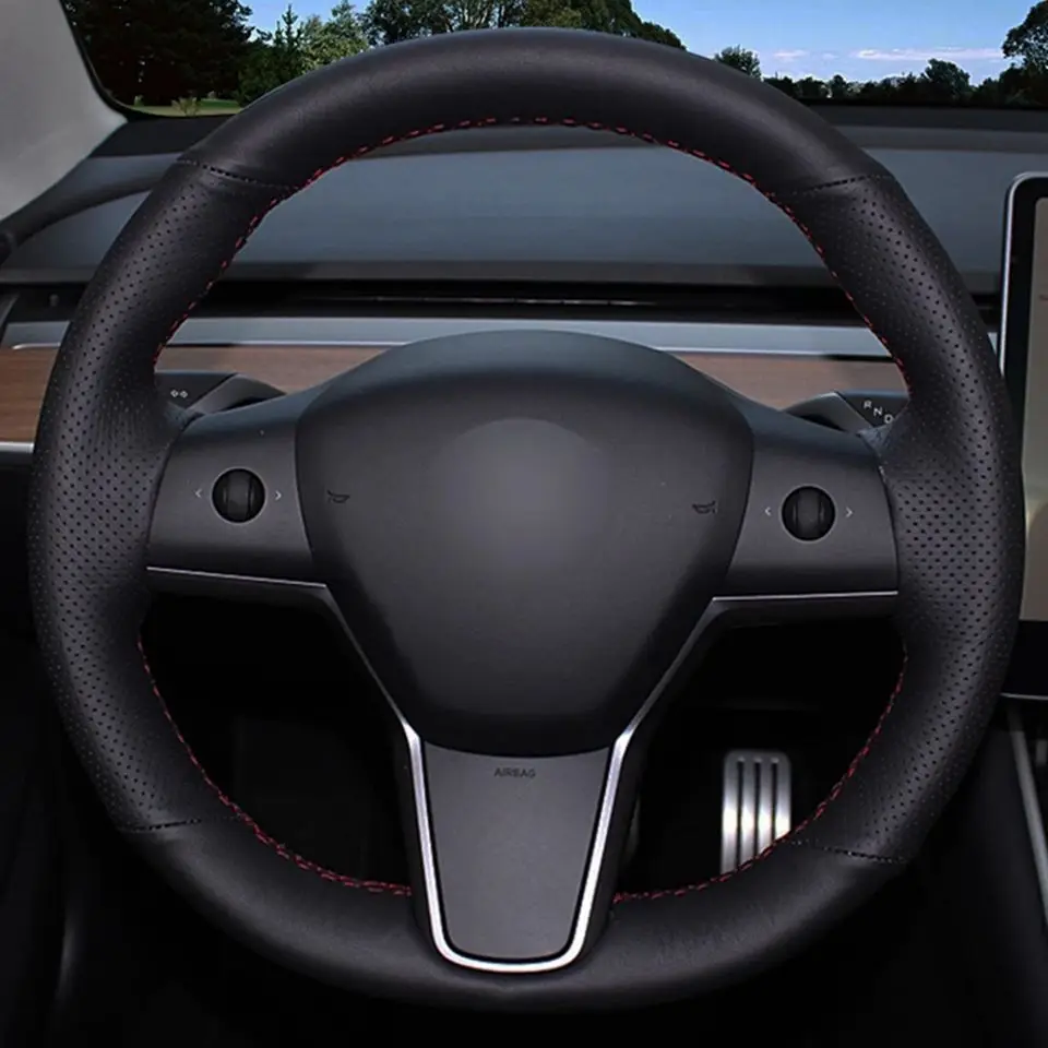 Чехол рулевого колеса автомобиля DIY ручной работы мягкая черная искусственная кожа для Tesla модель 3 2015-2020 модель Y 2019 2020