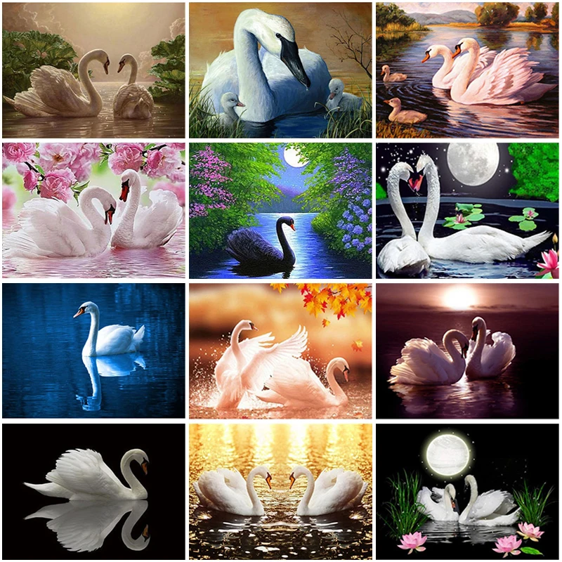 Картина маслом 5D сделай сам с лебедями, полноразмерная круглая и квадратная Мозаика из смолы, вышивка стразами в виде животных, наборы для вышивки крестиком, Декор
