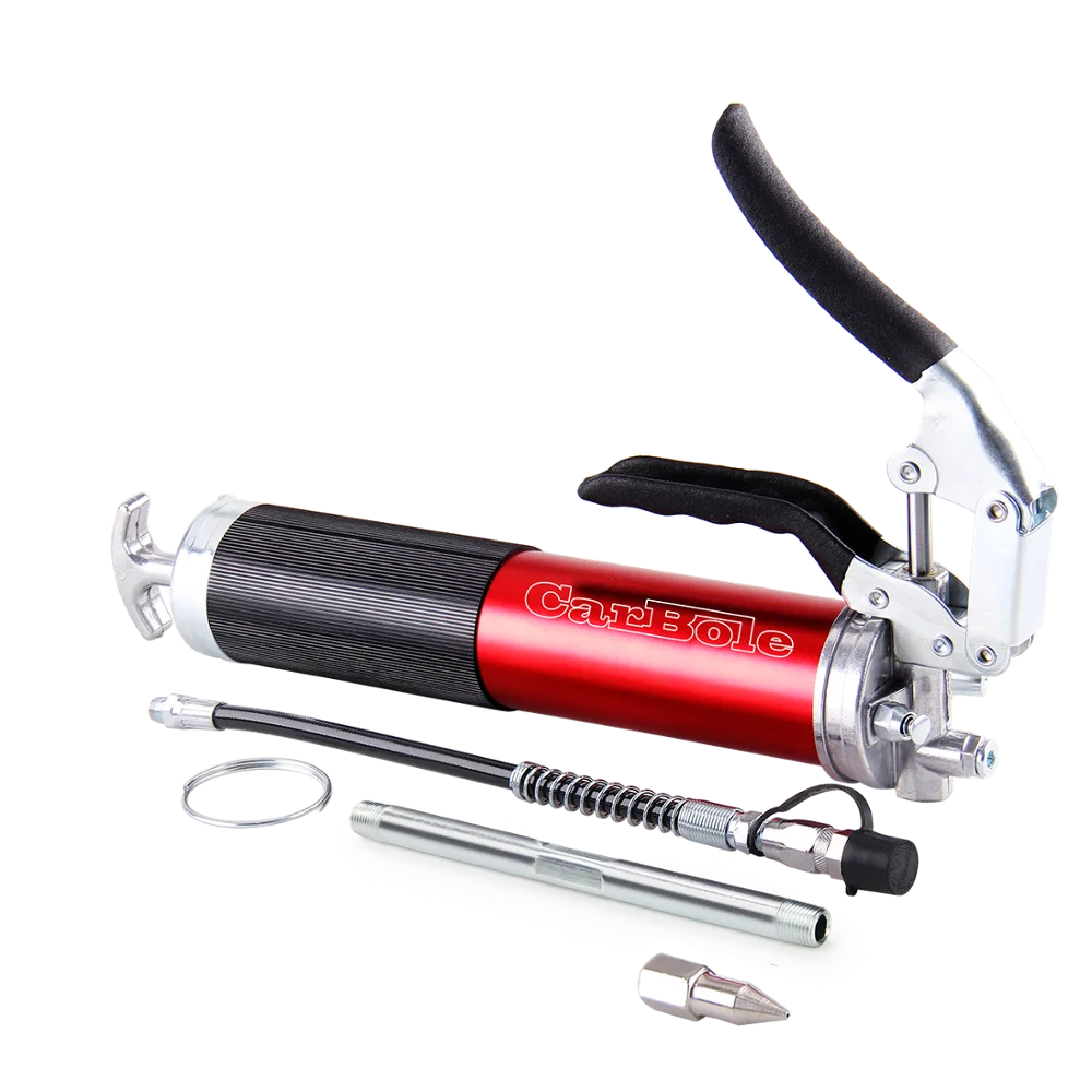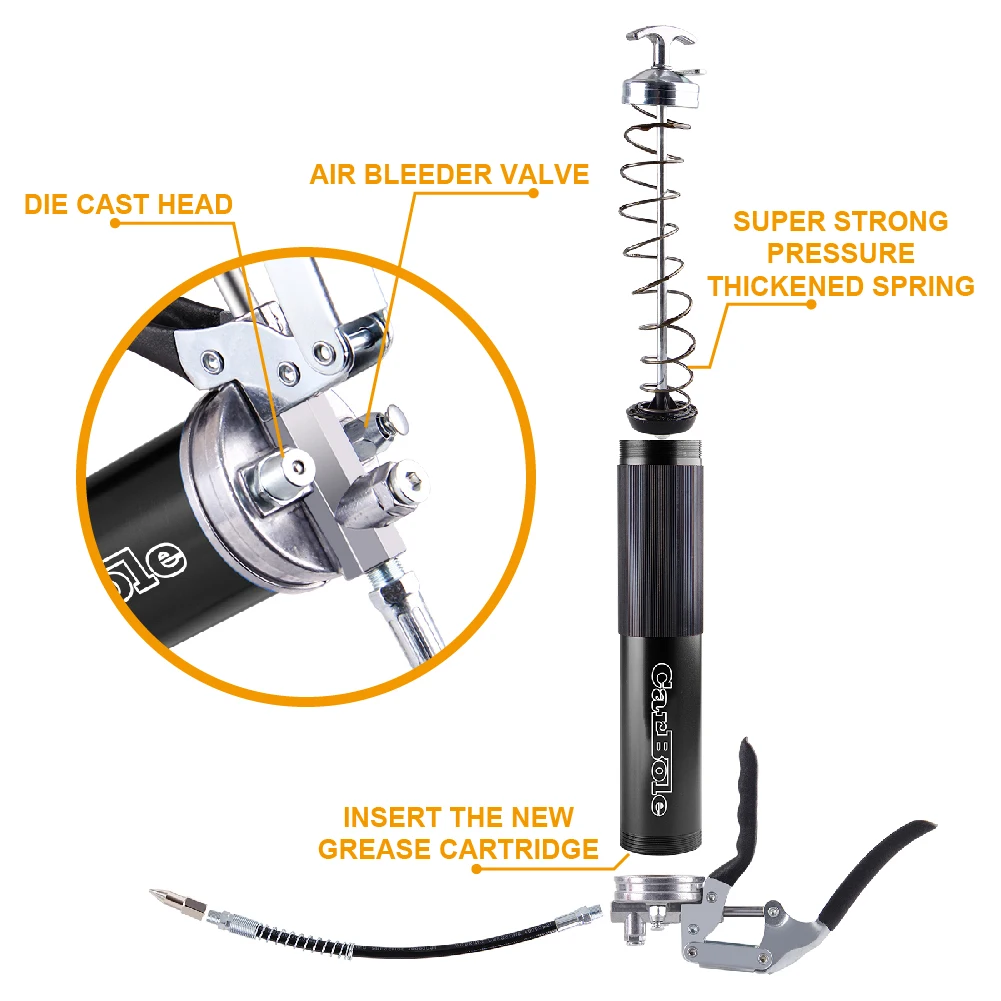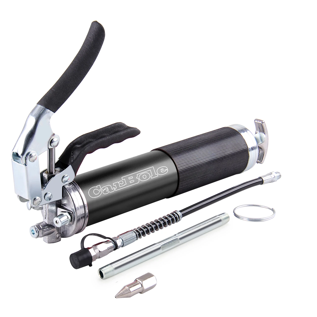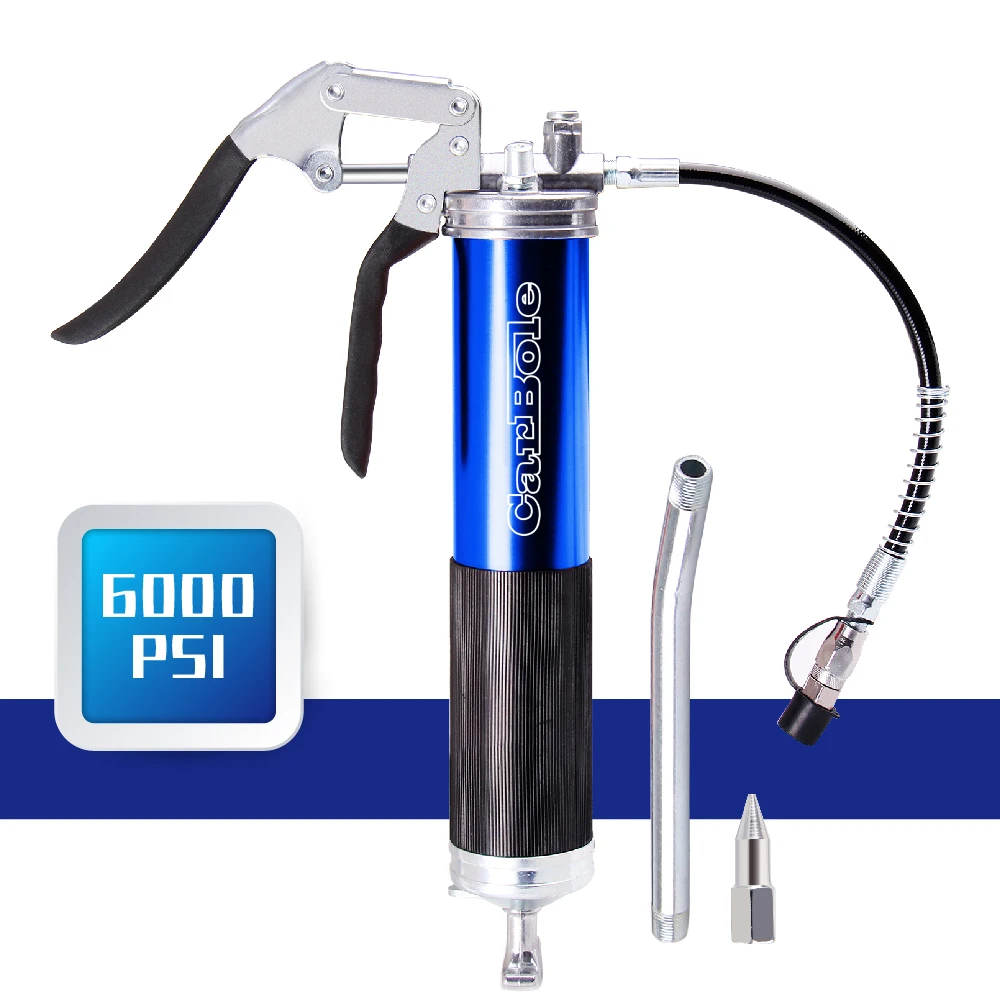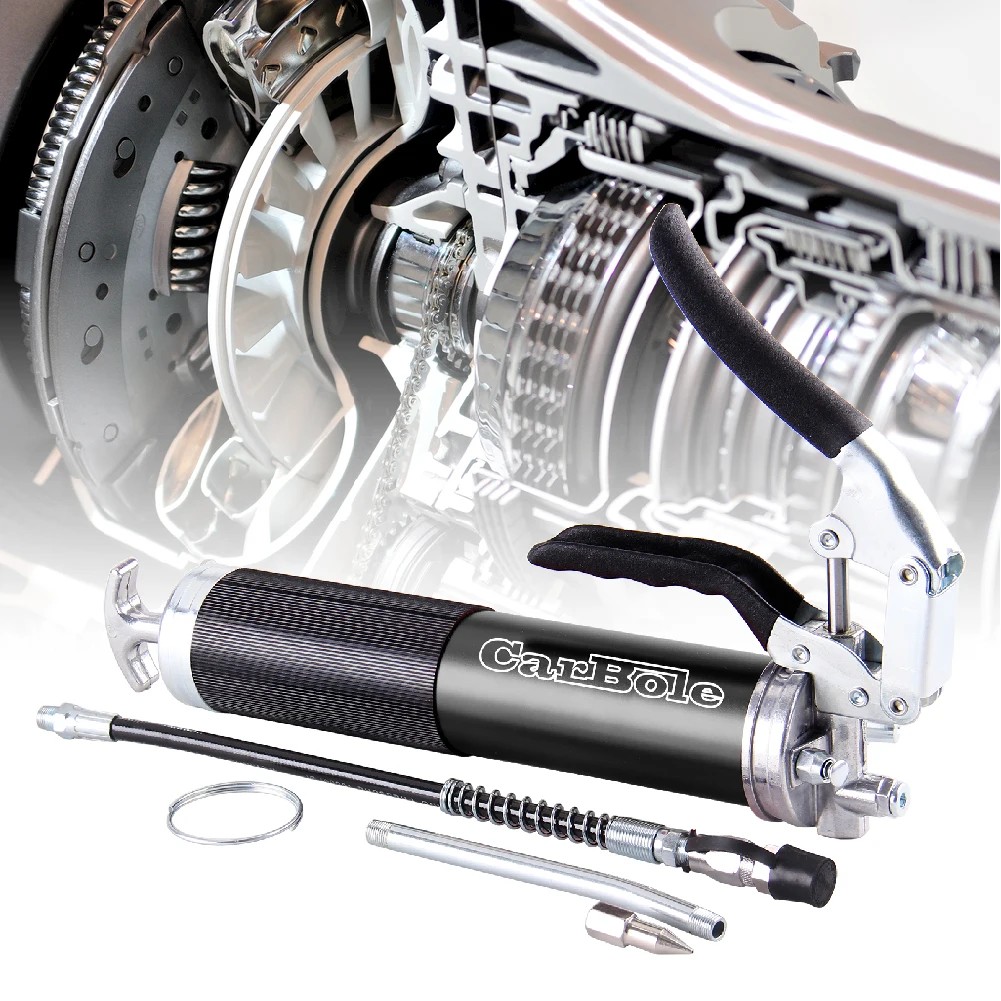 Пистолет для смазки 12 фунтов на квадратный дюйм, куб. См, 14 унций, с гибким шлангом 12 дюймов и металлическим удлинителем 5-дюйма