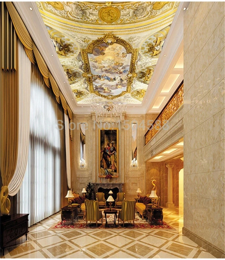 Пользовательские Настенные обои 3D роскошный Европейский Стиль Бог любовь ангел Зенит потолочное украшение для дома настенные Гостиная отель 3D Фреска