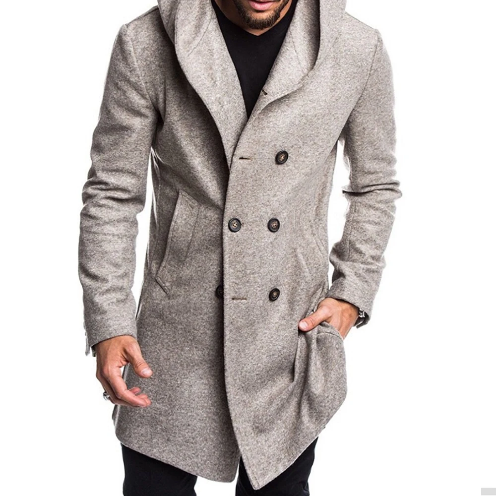 Осенне-зимнее мужское шерстяное пальто в британском стиле, новый дизайн, длинный тренчкот на молнии, брендовая одежда, качественное шерстяное пальто с капюшоном для мужчин