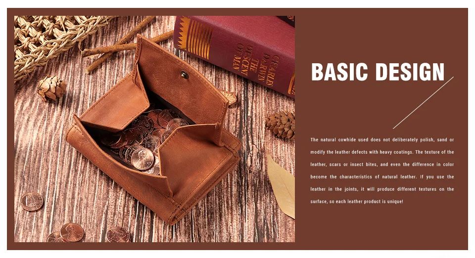 Мужской бумажник KAVIS, винтажный короткий кошелек из коровьей кожи...