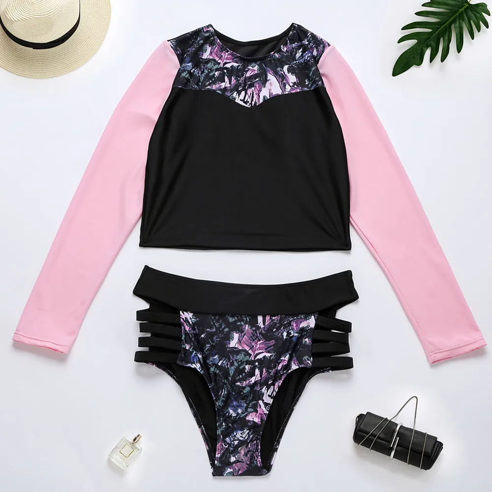 2021 женский купальник с длинным рукавом, рубашка для серфинга, топ, купальник из двух частей UPF50 + быстросохнущая пляжная одежда