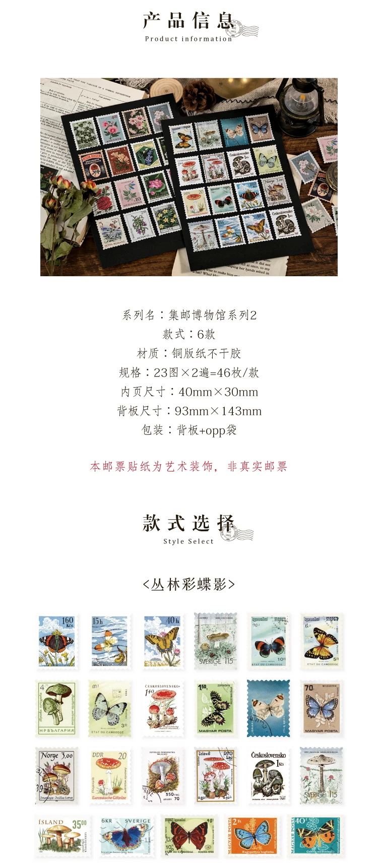 Винтажные стикеры Yoofun 46 шт.упак., почтовая марка, стикеры в сти...