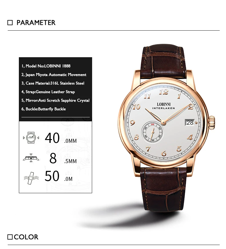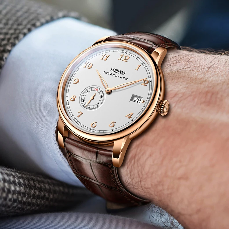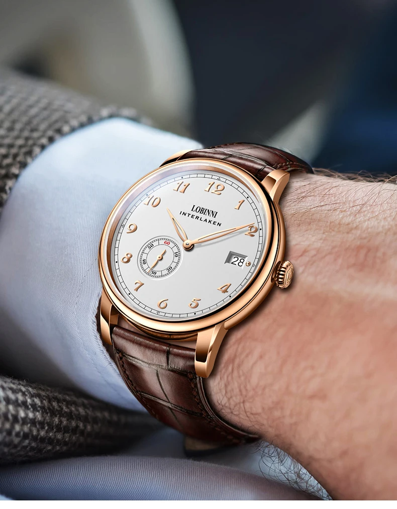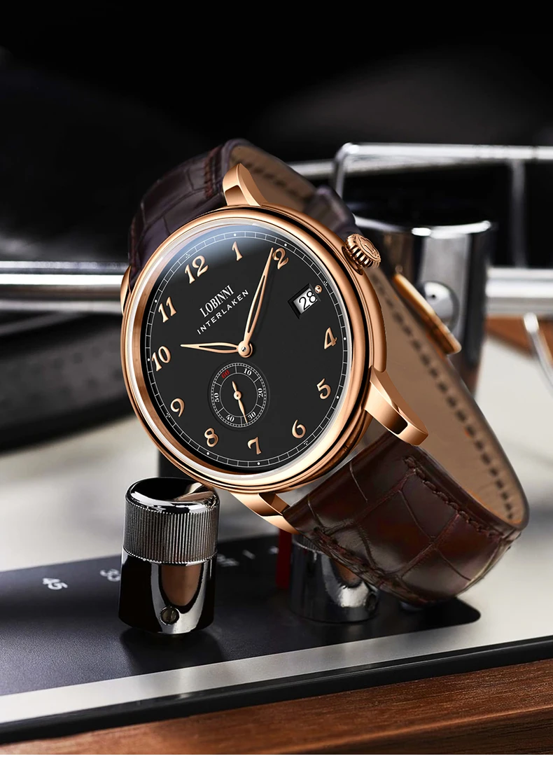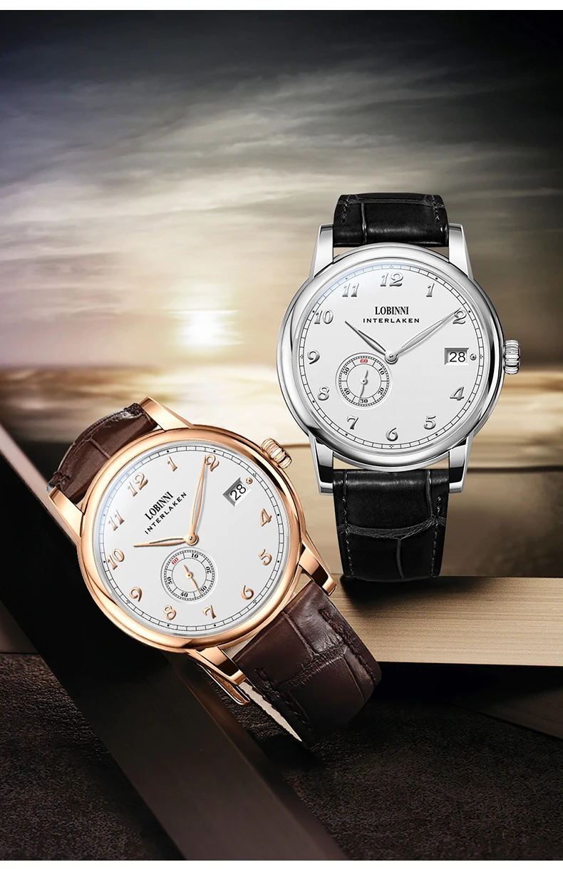 Мужские автоматические часы Lobinni, Роскошные мужские часы 50 м, водонепроницаемые швейцарские механические наручные часы с сапфировым зеркалом и автоподзаводом